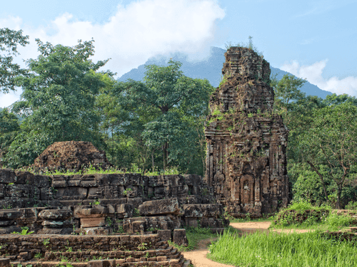 ダナンから約70kmの位置にある、ミーソン遺跡。ここでは7世紀から13世紀までに作られた建造物を見ることができます。自然の中にある遺跡、精緻な彫刻、など普段目にすることのない神秘的な風景に癒されるはず!