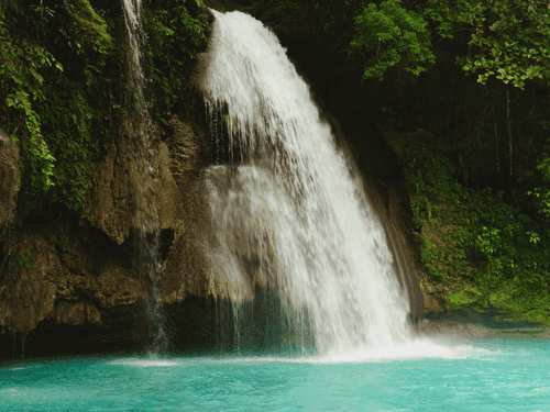セブ島南部・バディアン島にあるカワサン滝。世界の美しい滝100選にも選ばれた、神秘的なエメラルドグリーン色の滝です。カワサン滝ではキャニオニングなど、さまざまなウォーターアクティビティを体験できます!