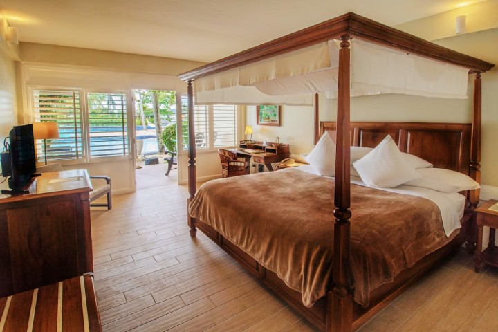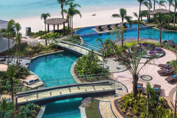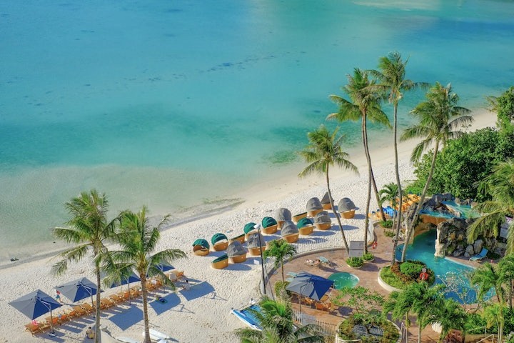 免税店やショッピング施設まで徒歩圏内のホテル。ビーチへはゲスト専用シャトルでアクセスできます。部屋からは、エメラルドグリーンの絶景をひとりじめ!