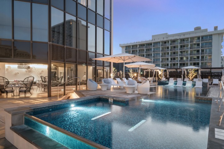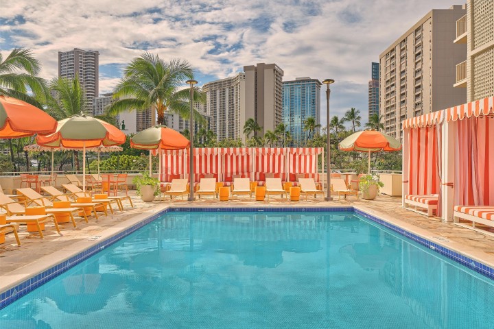 ミッドセンチュリーとモダンなデザインが融合したホテル。ワイキキ中心部という立地で、ビーチへのアクセスにも便利です。