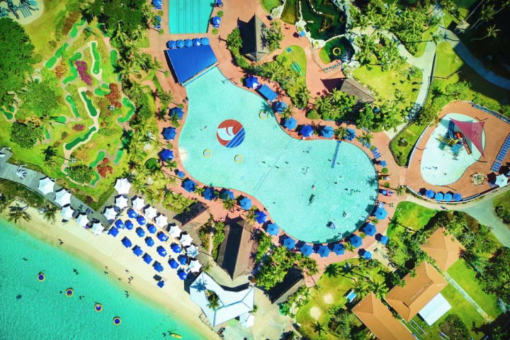 まるでテーマパークな5つ星ホテル。3つのウォータースライダーと8軒のレストラン&バー、カジノ、プライベートビーチなどリゾート気分を満喫できます。