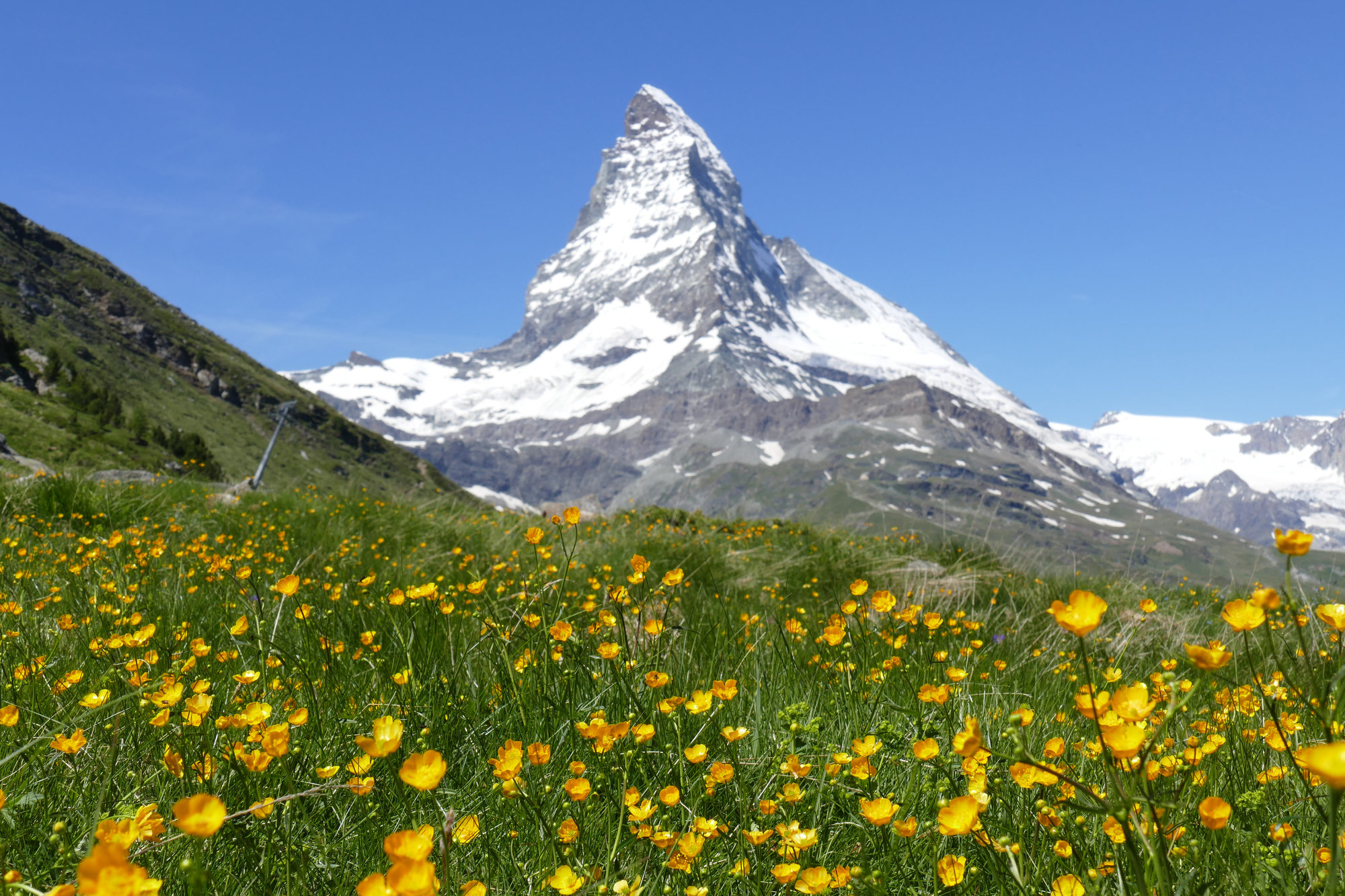 ハイキングや登山が目的なら、6月から8月の夏が文句なしのツェルマットのベストシーズンです!長い冬が終わり、アルプスの山々は生命力に満ち溢れます。日中の気温は15℃〜20℃前後と過ごしやすく、日差しを浴びながらのハイキングは最高に気持ちがいい!