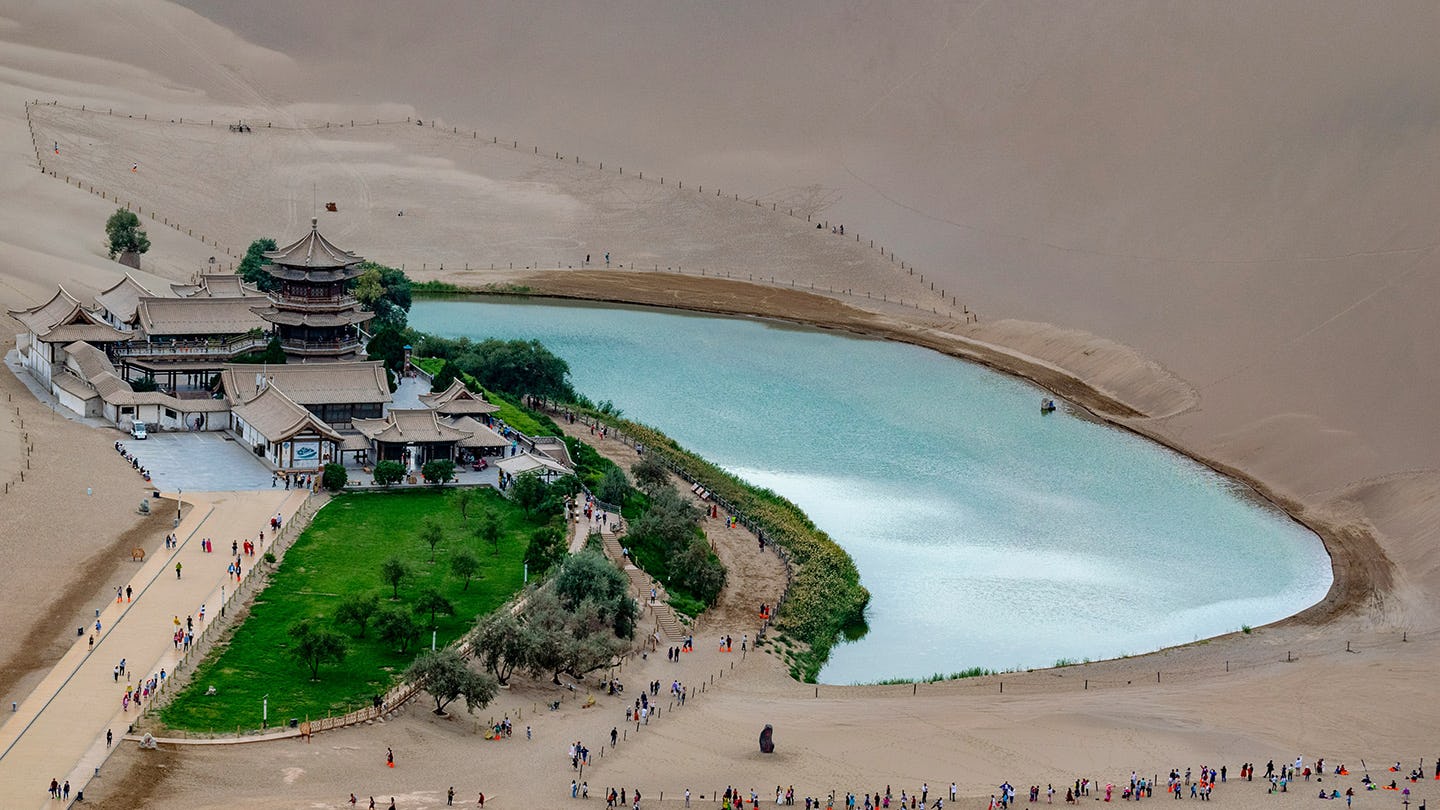 敦煌は中国北西部、甘粛省(かんしゅくしょう)に位置する砂漠のオアシス都市です。かつてシルクロードの重要な分岐点として栄え、東西の文化が交差した場所として豊かな歴史を誇ります。