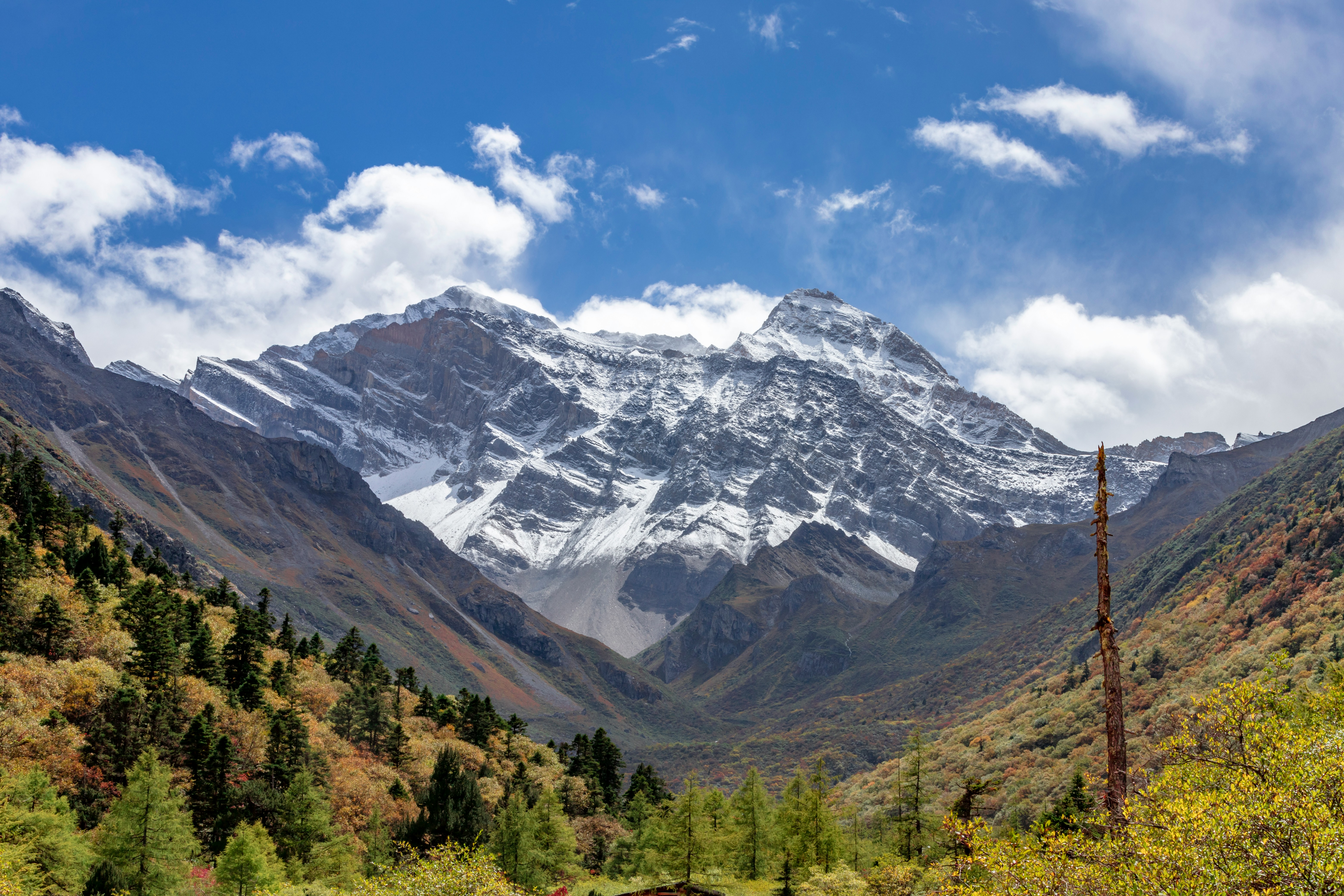 多くの人が「黄龍旅行のベストシーズン」として挙げるのが、この秋!9月下旬から10月にかけて、周囲の山々の木々が一斉に黄色く色づき始めます澄み切ったサファイアブルーの池の水面に黄金色の黄葉が映り込む光景は、まさに「フルカラーの黄龍」息をのむほどうつくしく、まるで一枚の絵画の世界に迷い込んだかのようです。