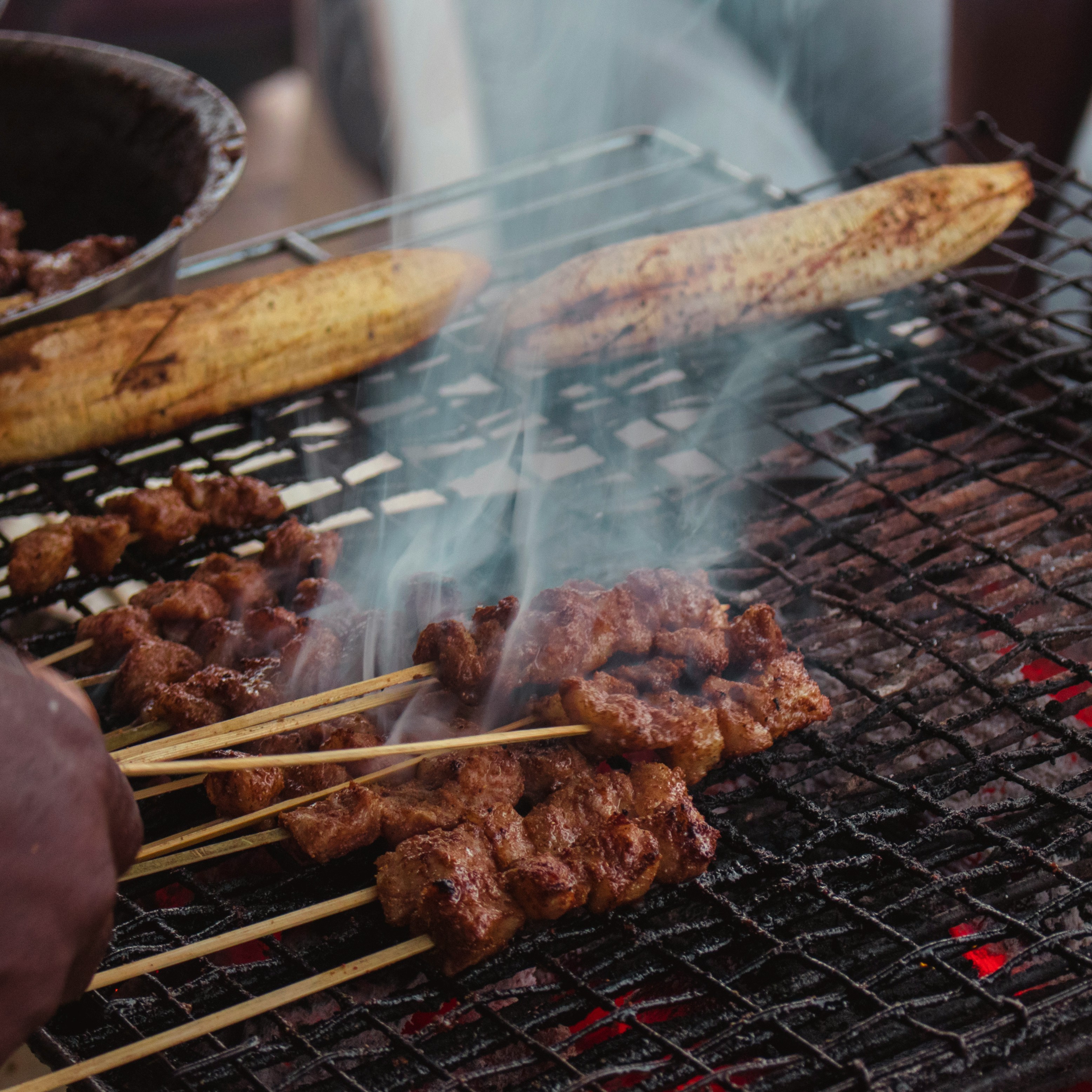 - 人気のストリートフードである、焼いた魚や肉(ブロシェット)は、500 CFAフラン(約125円)〜1,500 CFAフラン(約375円)程度で楽しめます。ビールと一緒に味わうのが現地流!