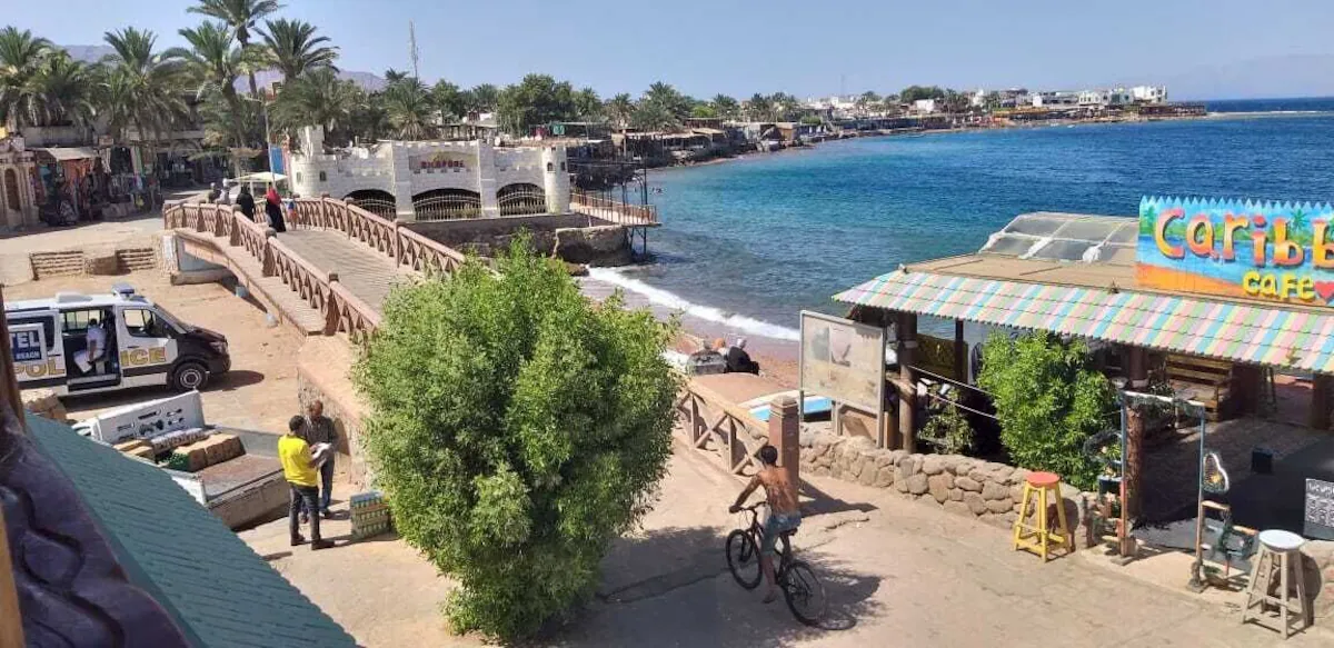 同じシナイ半島のリゾート地であるシャルム・エル・シェイクが高級ホテルや商業施設でにぎわうのに対し、ダハブはもっと素朴で、のんびりとした空気が流れているのが特徴。海岸沿いにはおしゃれなカフェやレストランが並び、人々は思い思いの時間を過ごしています。豪華さよりも、自由でリラックスした雰囲気を求める人にはぴったりの場所です!