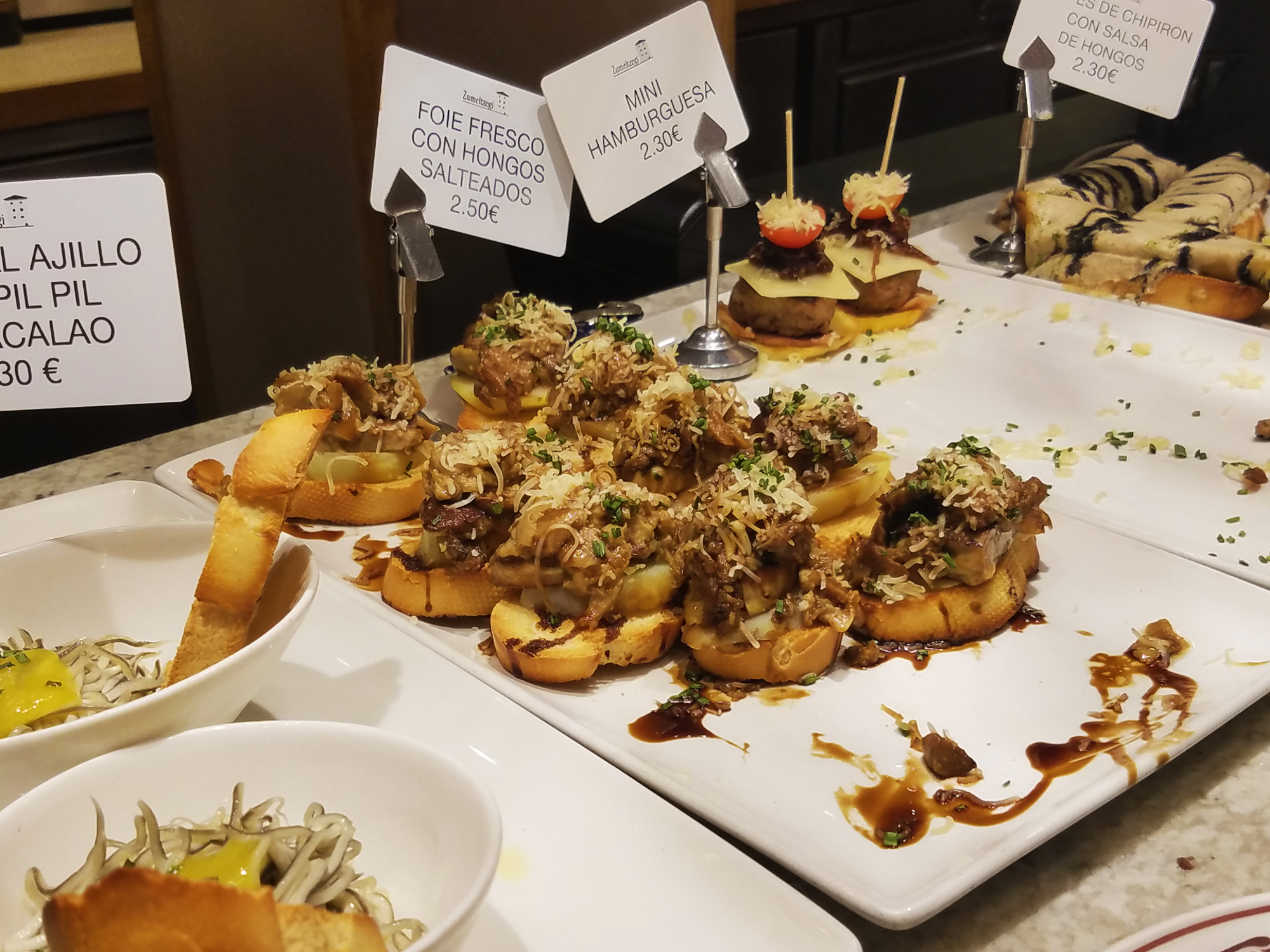 1軒でピンチョス1〜2個とドリンク1杯を楽しみ、サクッと次の店へ移動するのが現地の流儀。1軒あたり8〜12ユーロ(約1,480〜2,200円)を目安にするといいでしょう。3軒ハシゴしても、5,000〜6,000円ほどで満腹になれますよ。