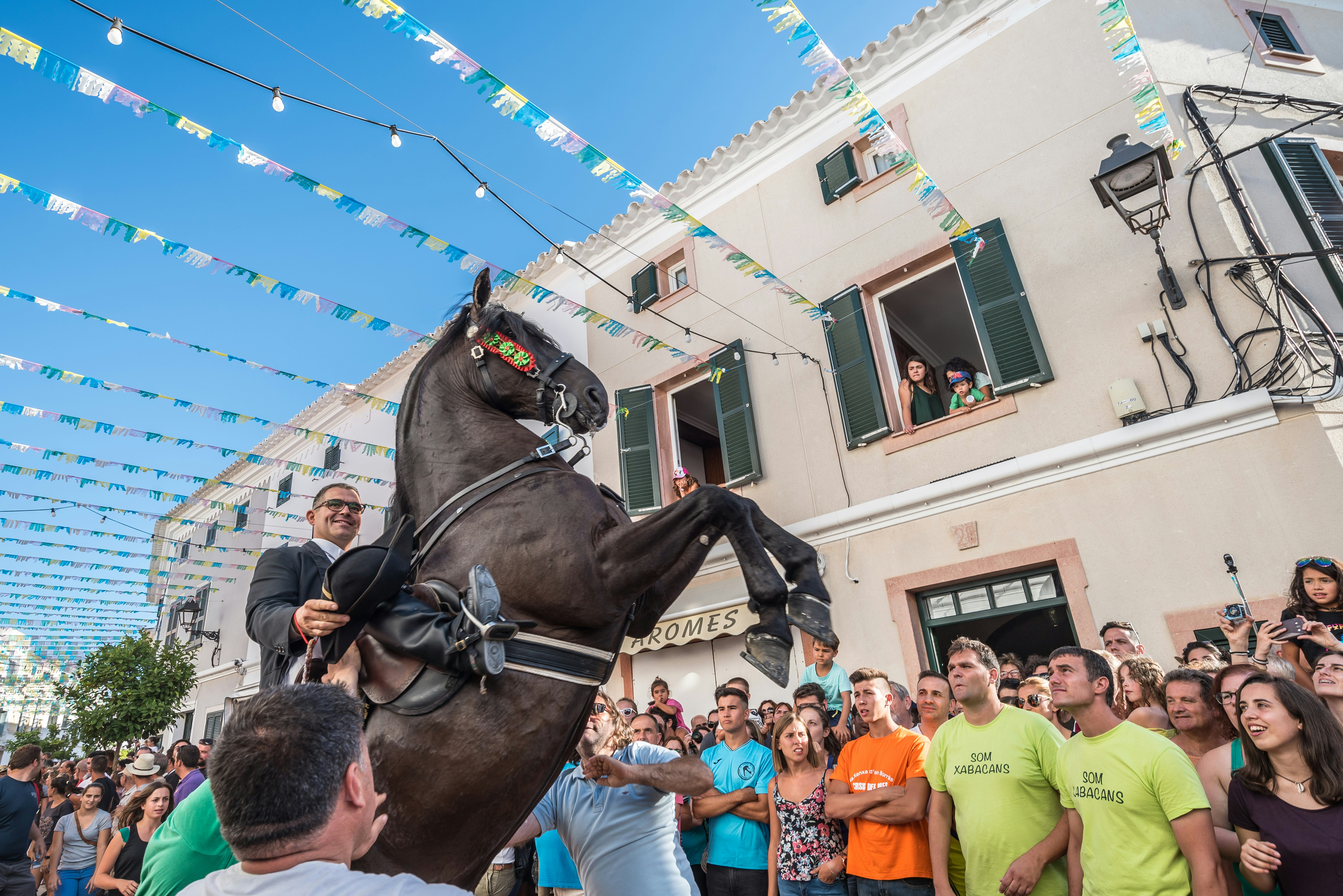 この季節の魅力は、うつくしいビーチだけではありません。6月下旬から9月にかけて、島内の各町で守護聖人を祝う伝統的なお祭り「フィエスタ」が次々と開催されます。そのハイライトが、6月23日・24日にシウタデリャで開催される「サン・ジョアン祭り」。14世紀から続くこのお祭りは、島の魂そのもの。うつくしく装飾された馬と「カイシャース」と呼ばれる騎士たちが街を練り歩き、馬が立ち上がって観衆を沸かせる「ハレオ」は圧巻の光景です!