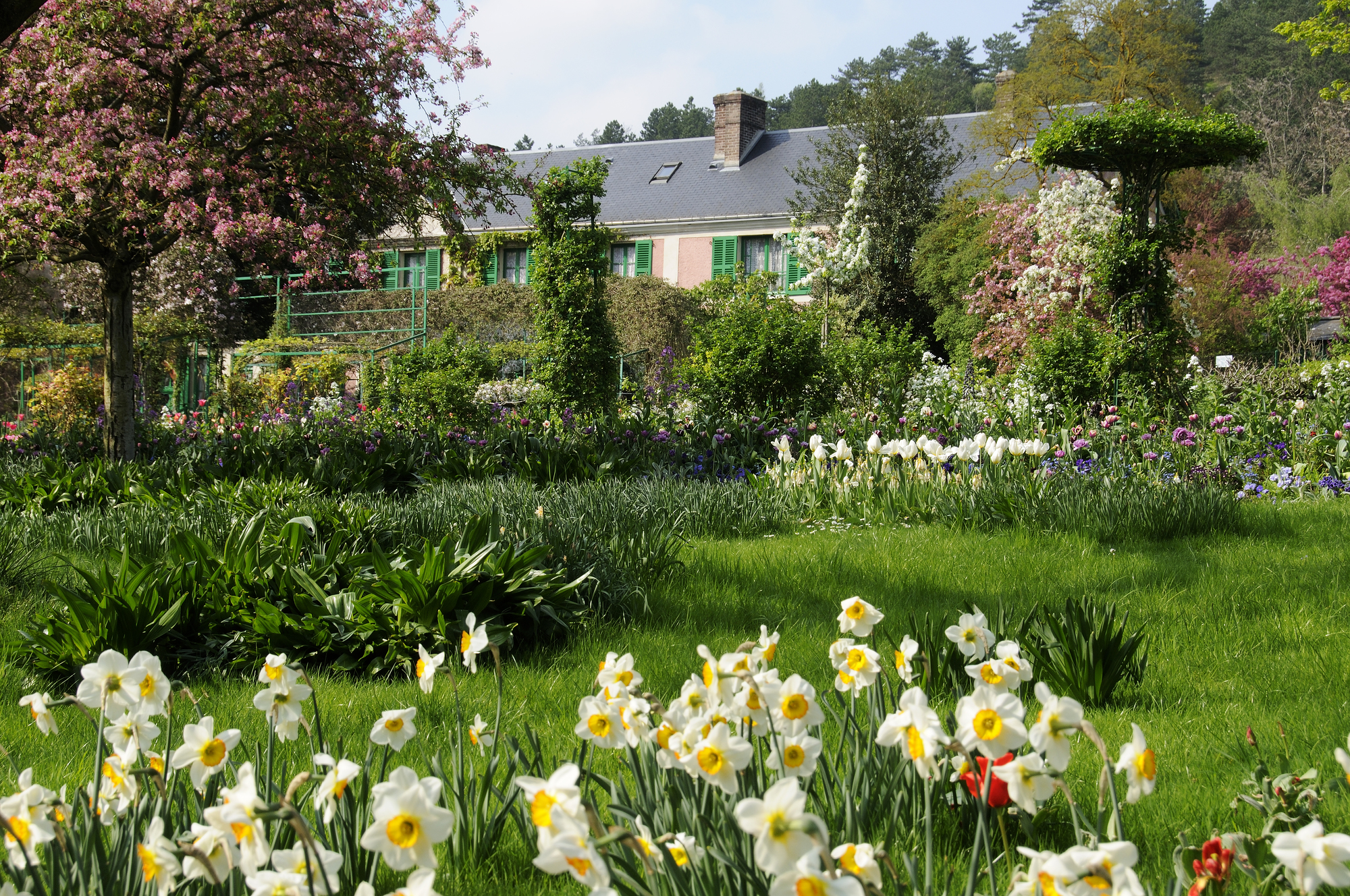 長い冬の眠りから覚めた庭園が一斉に輝きだす春は、ジヴェルニーが最も生き生きとする季節のひとつ!4月になると、地面はチューリップや水仙、ヒヤシンスといった球根花で埋め尽くされ、まるで色とりどりの絨毯のよう。ひんやりと澄んだ空気の中に、花の甘い香りが漂い始めます。