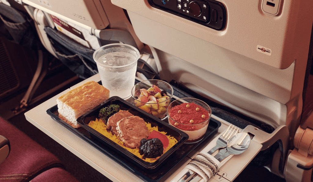 長距離フライトを快適に楽しめるよう、さまざまな機内食が用意されています。日本発着便では、日本人の好みに合うメニューが多く、和食もえらべます。出発の5日前から事前予約が可能。アルコールを含むドリンクは無料です。