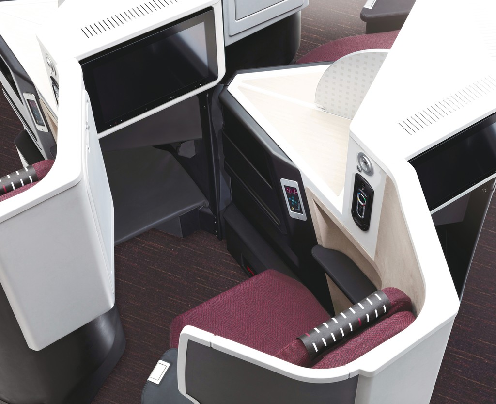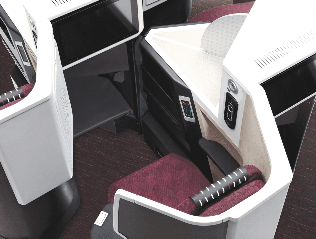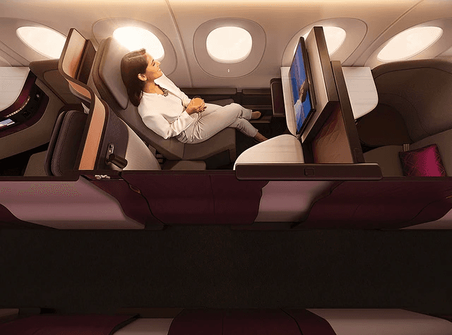 カタール航空のビジネスクラス「Qsuite」は、扉付き個室でプライベート空間を提供。フルフラット約2mのベッドや大型モニター、広い収納とテーブルで、空の上のスイートルームのような体験ができます。洗練されたデザインと快適性で、特別な空の旅行を楽しめます。