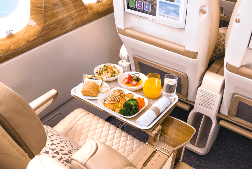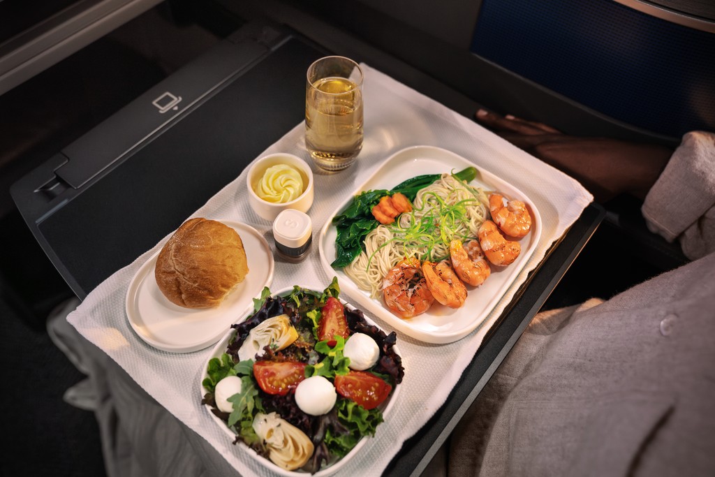 世界のトップシェフが監修したフルコースを、空の上で楽しめます。注文はお好きな時間にどうぞ。前菜からデザートまで、本格的な味わいを堪能。厳選ワインやシャンパンとともにぜいたくなひとときを演出します。