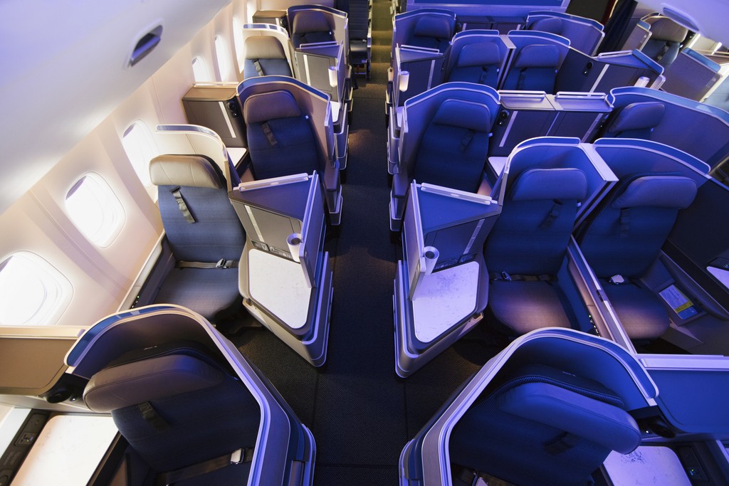 「ユナイテッド・ポラリス」は、全席が通路に面した1-2-1の配列。プライバシーが確保され、リクライニング180度のフルフラットベッドシートや充実したアメニティ、エンタメ設備も完備。空の上で自分だけの小さな部屋を楽しめます。