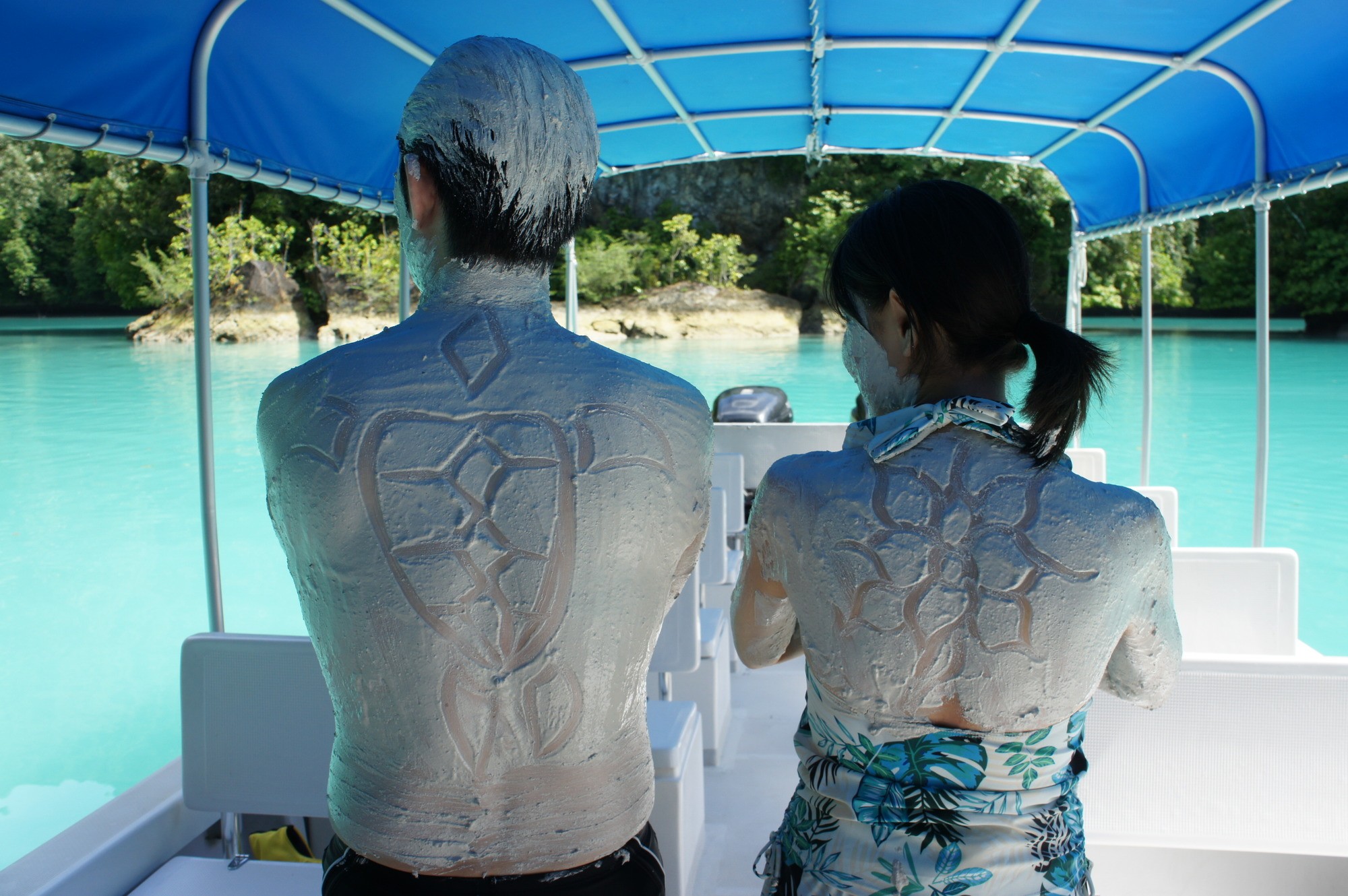 パラオには、神秘的な乳白色の海があります。石灰岩が長い時間をかけて溶け、泥となって海底に留まったことで、この特別な青色が生まれました。泥には美白効果があるとされ、全身泥パックが人気です🙌