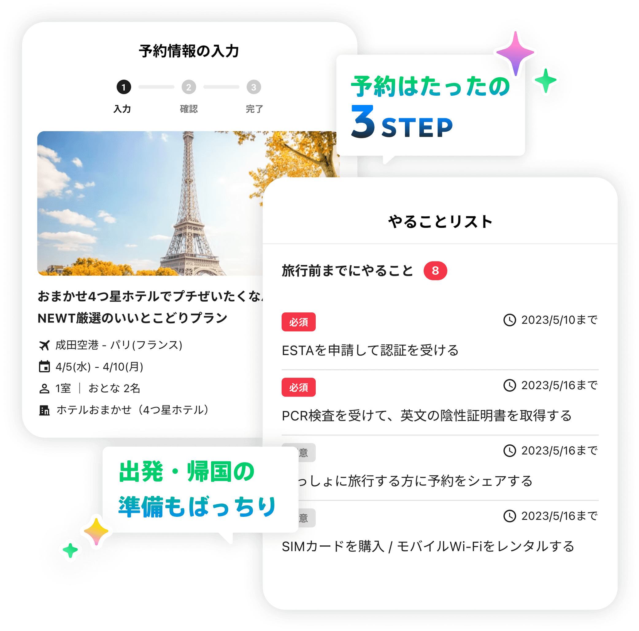スマートフォンの通信、海外旅行保険、人気観光地の予約は早めの準備がおすすめです。