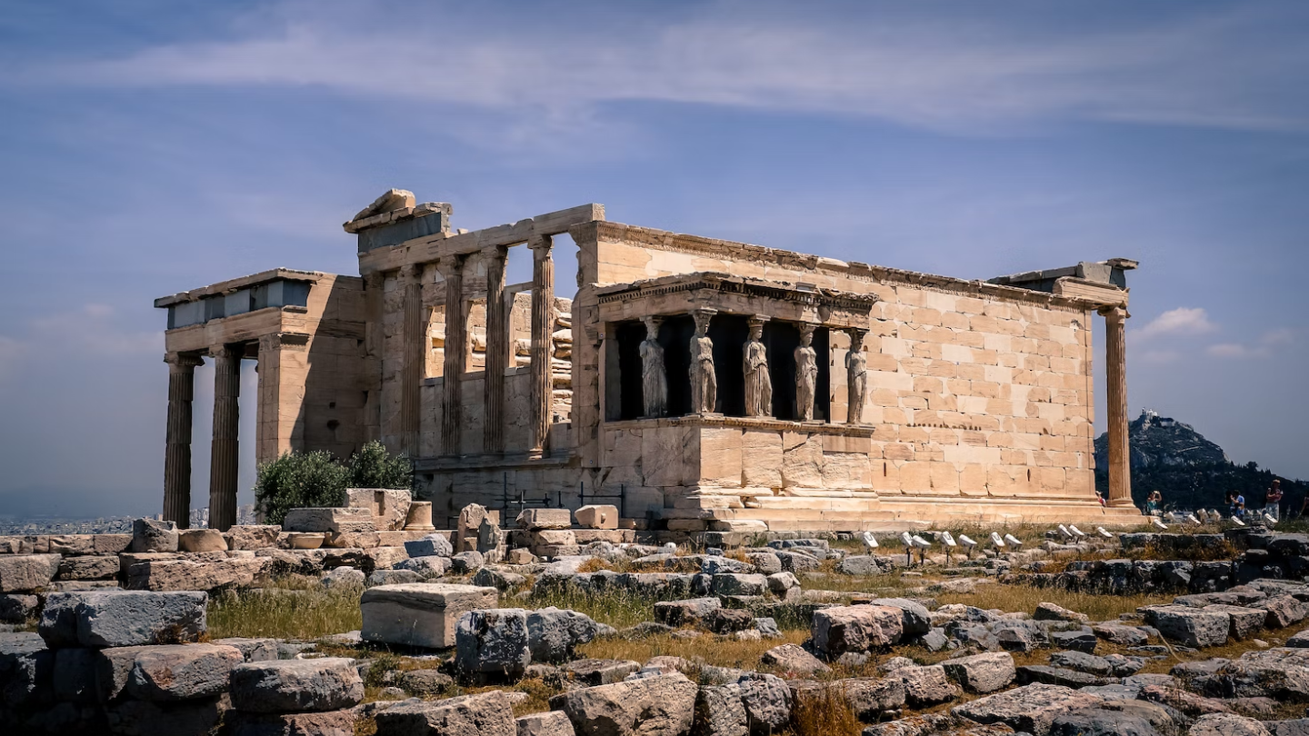 エレクティオン神殿は、ギリシャ神話に登場するアテナとポセイドンとエリクトニオスに捧げられた神殿。アテナの女神像が安置されていたことでも知られている、イオニア式建築の代表作です。