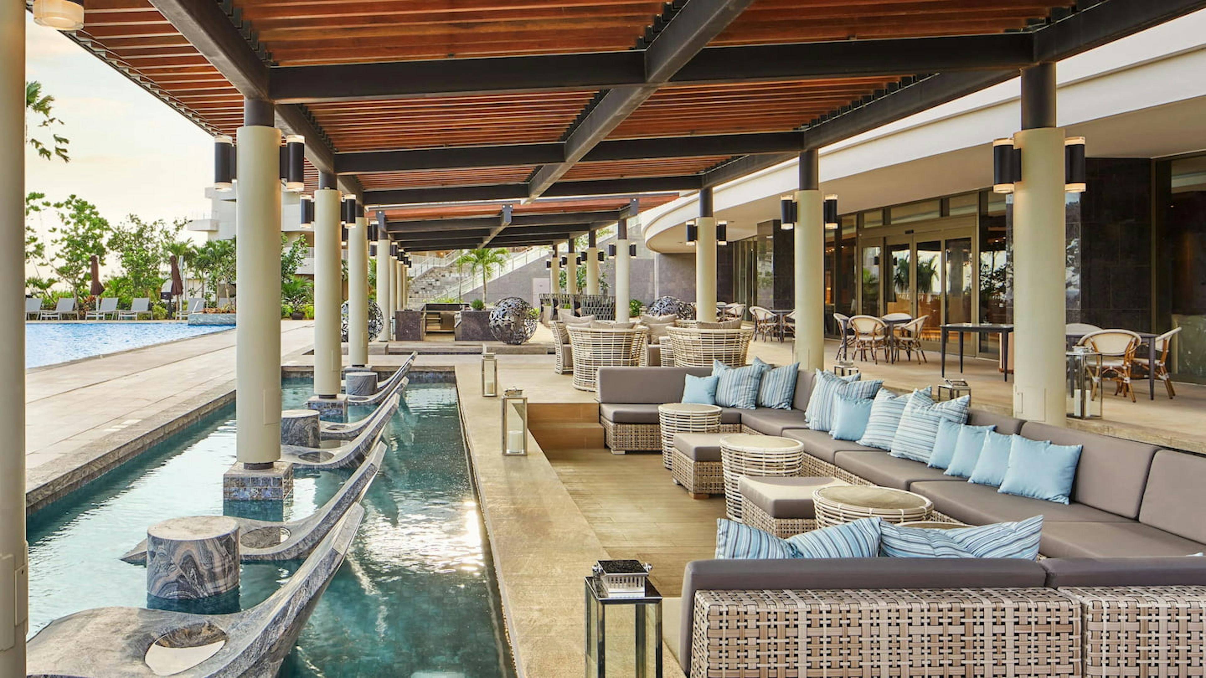 プールはインフィニティプール、キッズプールがあります。インフィニティプールは8時〜23時まで利用できて、夕方にはプールからサンセットを眺めることができます。ロマンチックなひと時を過ごせますよ。また、先ほどご紹介したヌヌバーが隣接していて、夜はナイトプールと噴水ショーが楽しめます。朝から夜まで満喫できる魅力いっぱいのプールです。
