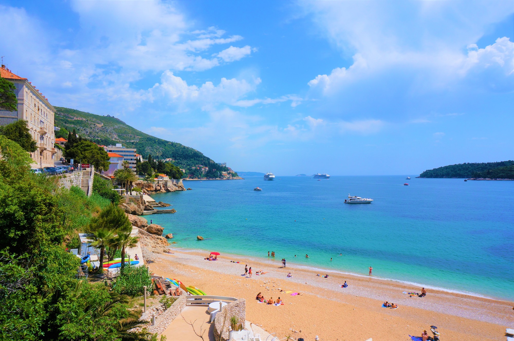 ドブロブニクが一年で最も輝く季節、それが夏です!日本のジメジメした梅雨とは対照的に、ドブロブニクの夏はカラッとした晴天が続き、まさに天然の絶景スポットと化します。アドリア海は宝石のようにキラキラと輝き、旧市街のオレンジ色の屋根とのコントラストは息をのむほどのうつくしさ。