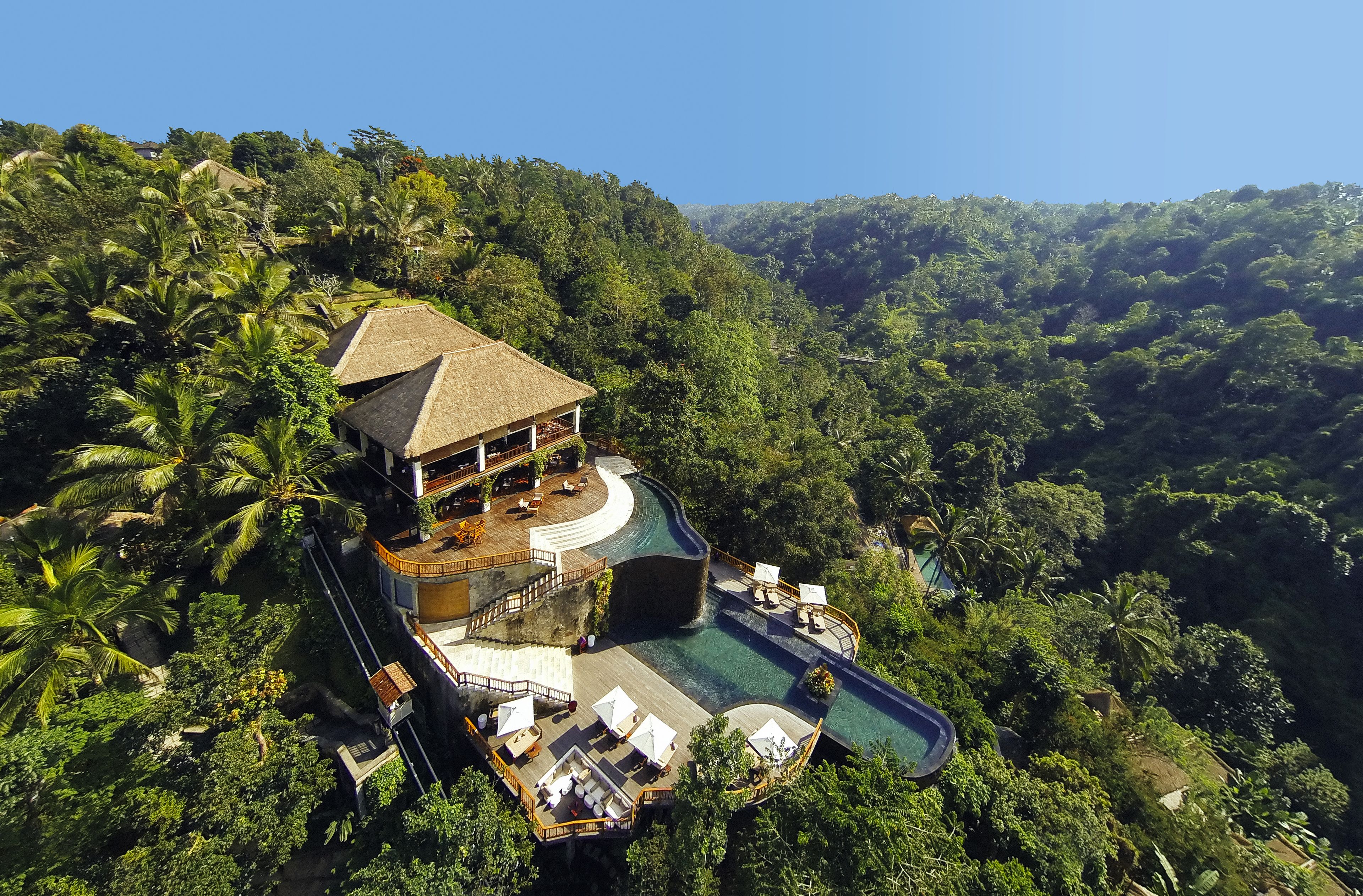 バリの吊り庭園(Hanging Gardens of Bali)は、ウブドの静かなジャングルの樹冠を見下ろすように建てられた高級ホテル。敷地内には優雅なヴィラが点在し、本格的なインドネシアスタイルの室内でくつろげるほか、ユニークなジャングル・ケーブル・リフトや極上のスパなどバラエティゆたかなメニューを楽しみながら滞在できます。