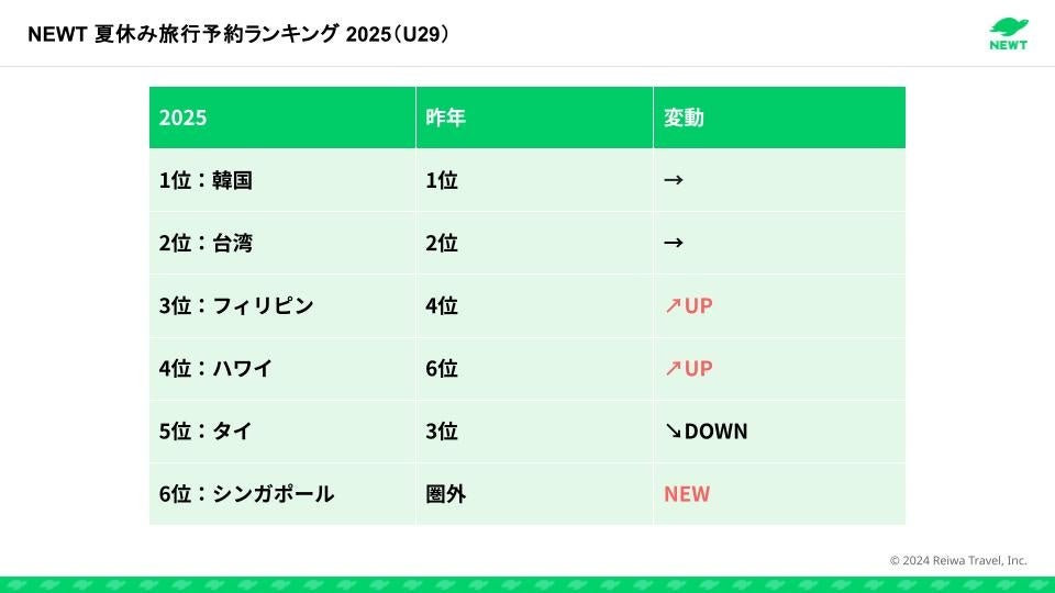 ◾️【速報】NEWT U29 夏休み旅行予約ランキング 2025