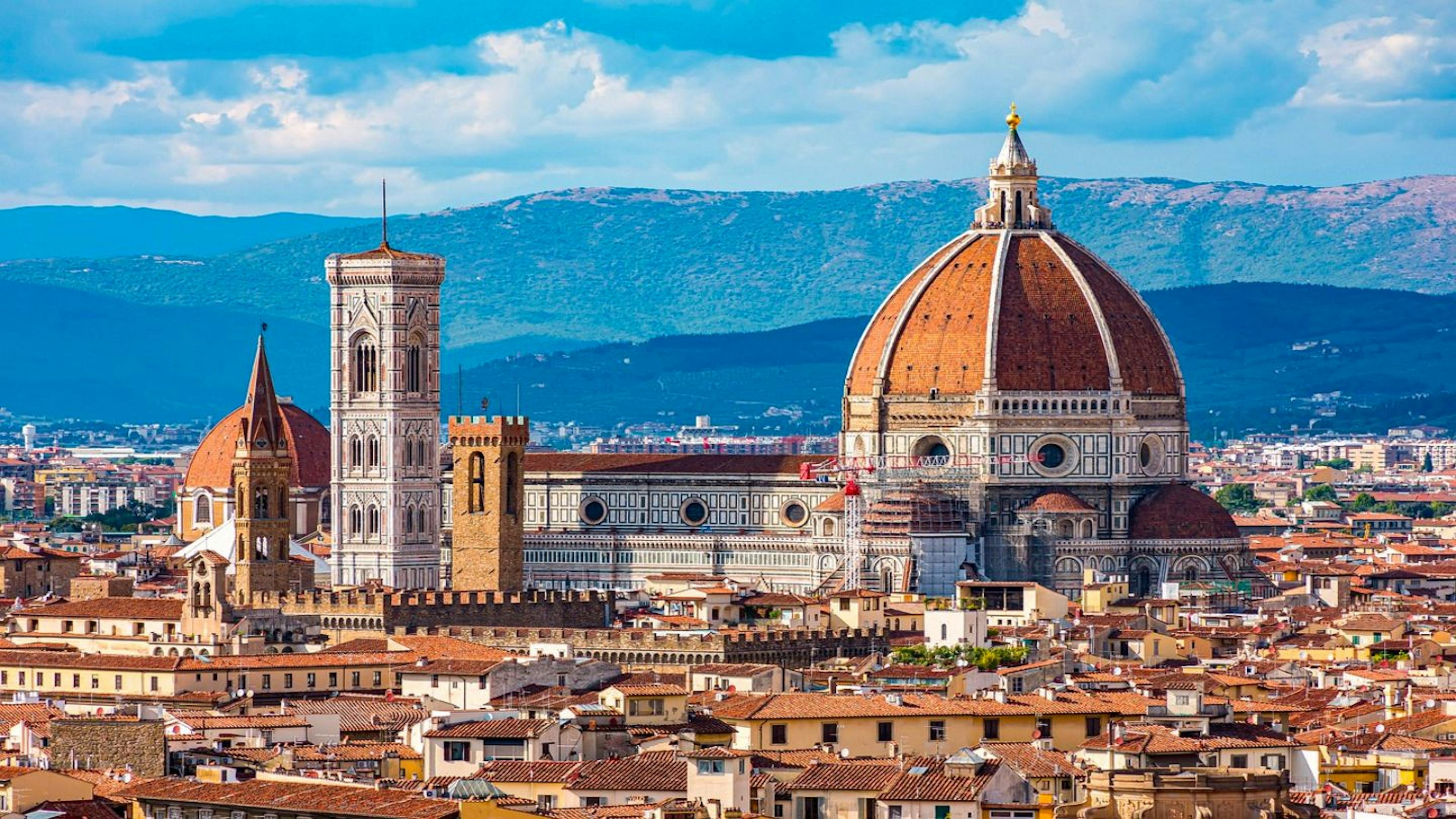 サンタ マリア デル フィオーレ大聖堂は世界で3番目に大きい教会で、1296年に建設が始まり、さまざまな建築家の手で140年かけて完成したフィレンツェを代表する観光スポットです。