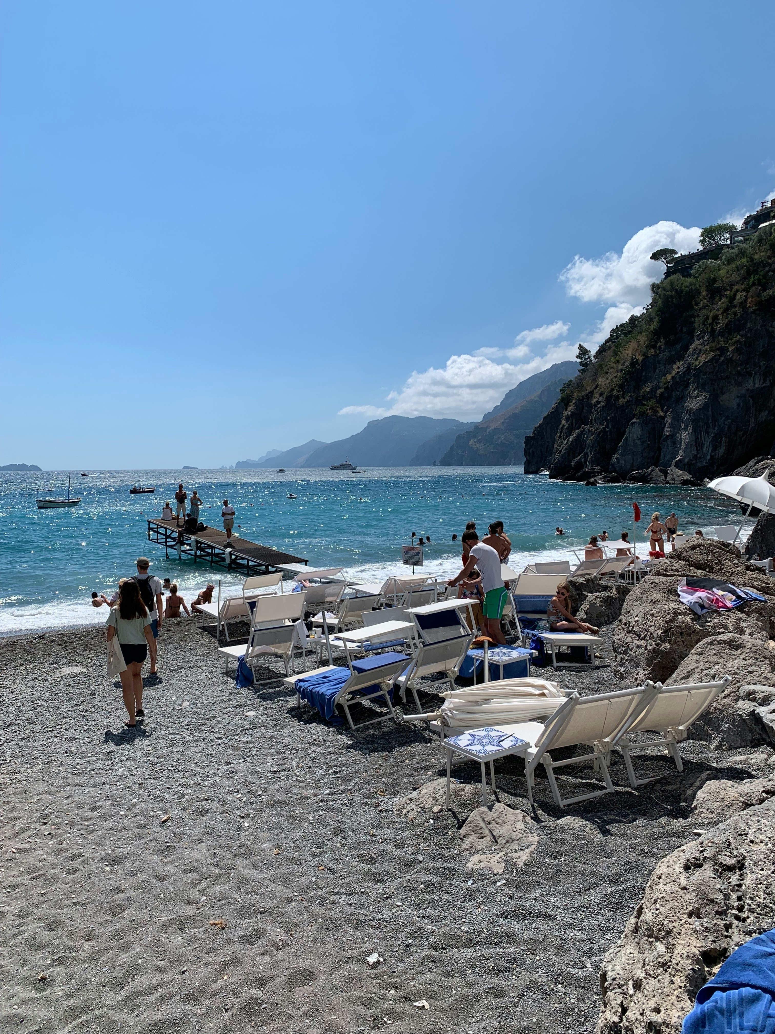 カプリ島には砂浜が少なく、ゴツゴツした岩場のプライベート・ビーチクラブ(イタリア語で「Lido(リド)」)で日光浴や海水浴を楽しむのが主流です。
