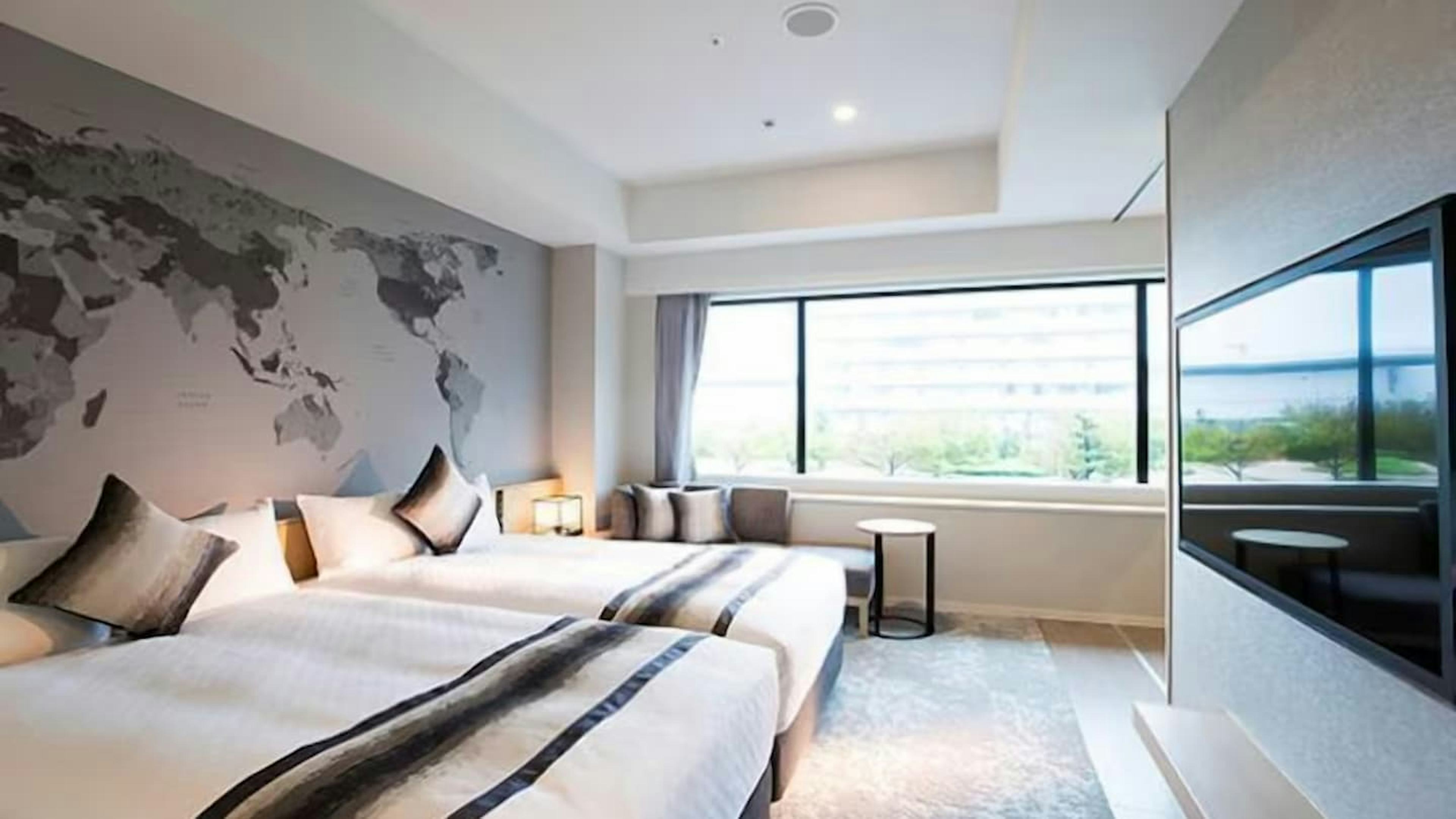 中部国際空港セントレアホテルのお部屋は、壁に描かれた世界地図がモチーフのパシフィックサイドと、和風モダンなインテリアが特徴のセントラルサイドがあります。どちらも清潔感のある空間づくりが徹底されており、ビジネス利用でも観光でも快適に過ごせます。
