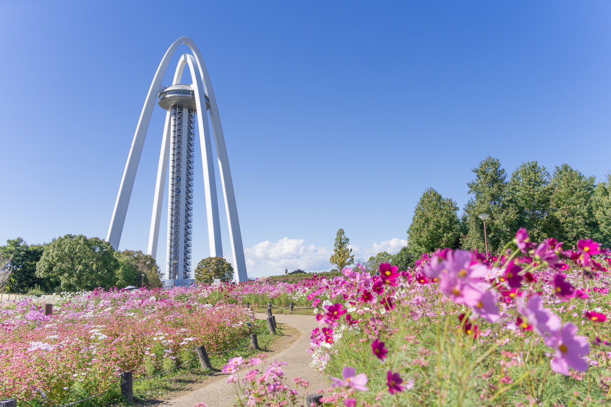 国道138号線沿いの展望タワーと公園、季節の花々と絶景が楽しめる一宮のランドマーク