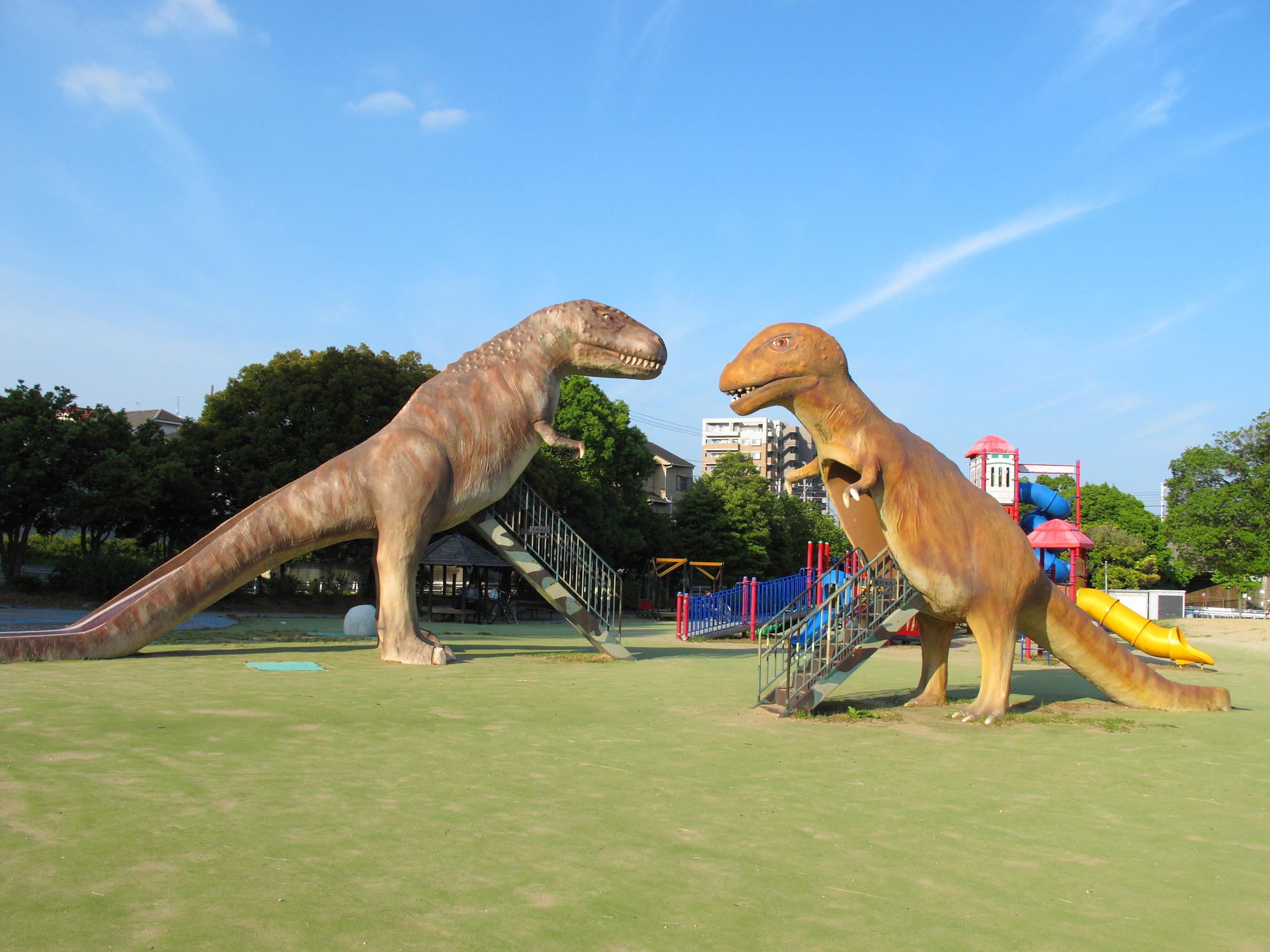 子どもたちに人気の恐竜広場には2体の恐竜滑り台と大型複合遊具があり、若草山の斜面では段ボールやソリ遊びも楽しめます。自然豊かな園内には、竹林散策路や花木園、桜の園があり、四季折々の花々が咲き誇ります。また、湧水が豊富で希少な植物も生息する貴重な自然環境を有しており、都会の中のオアシスとして多くの人々に親しまれています。