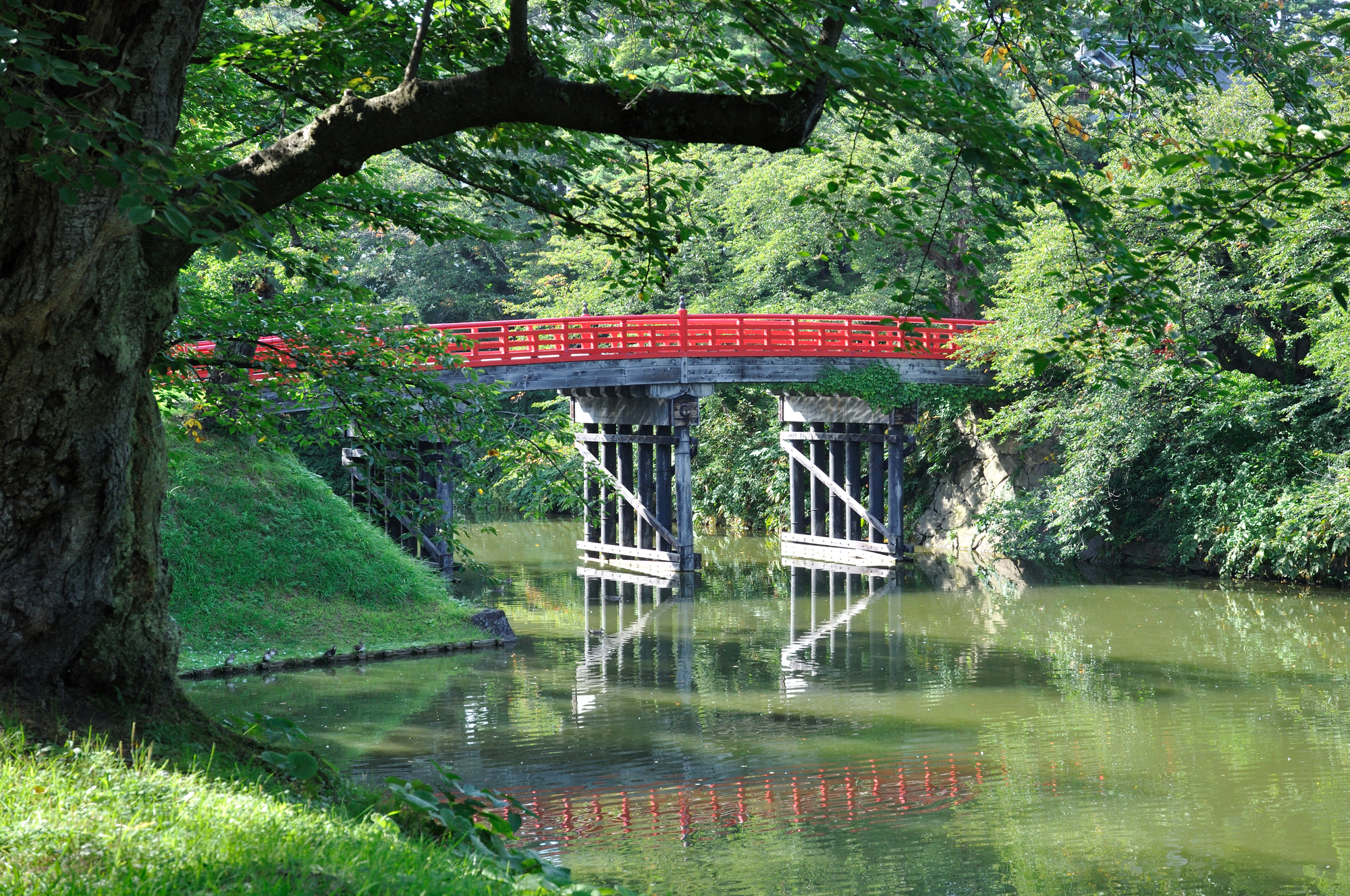弘前公園の景観を象徴する木橋