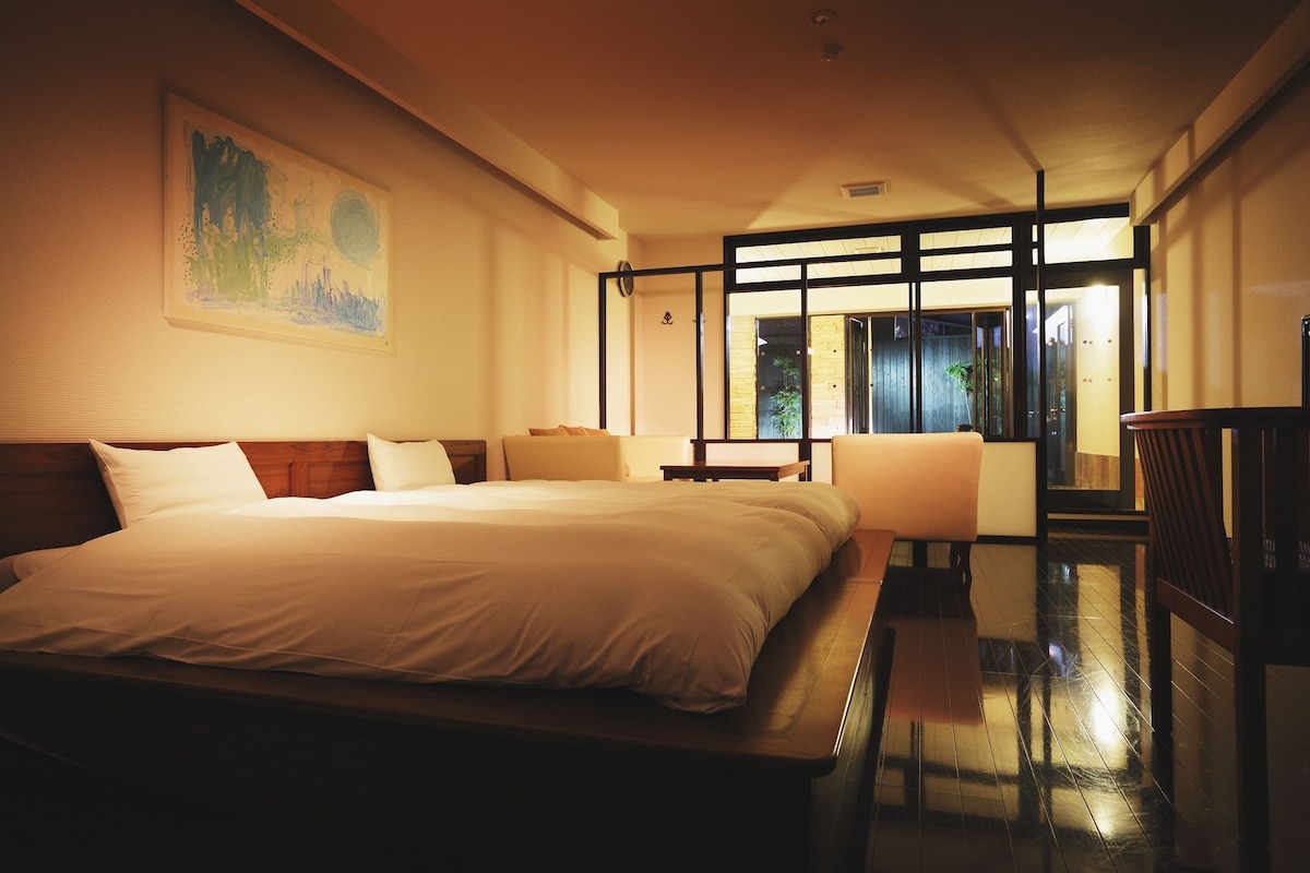 こちらは12畳と6畳の広さで、最大7名まで宿泊でき、3世代旅行にも最適です。小さな子どもがいても周りを気にせず、家族みんなで温泉の時間を楽しめるでしょう。