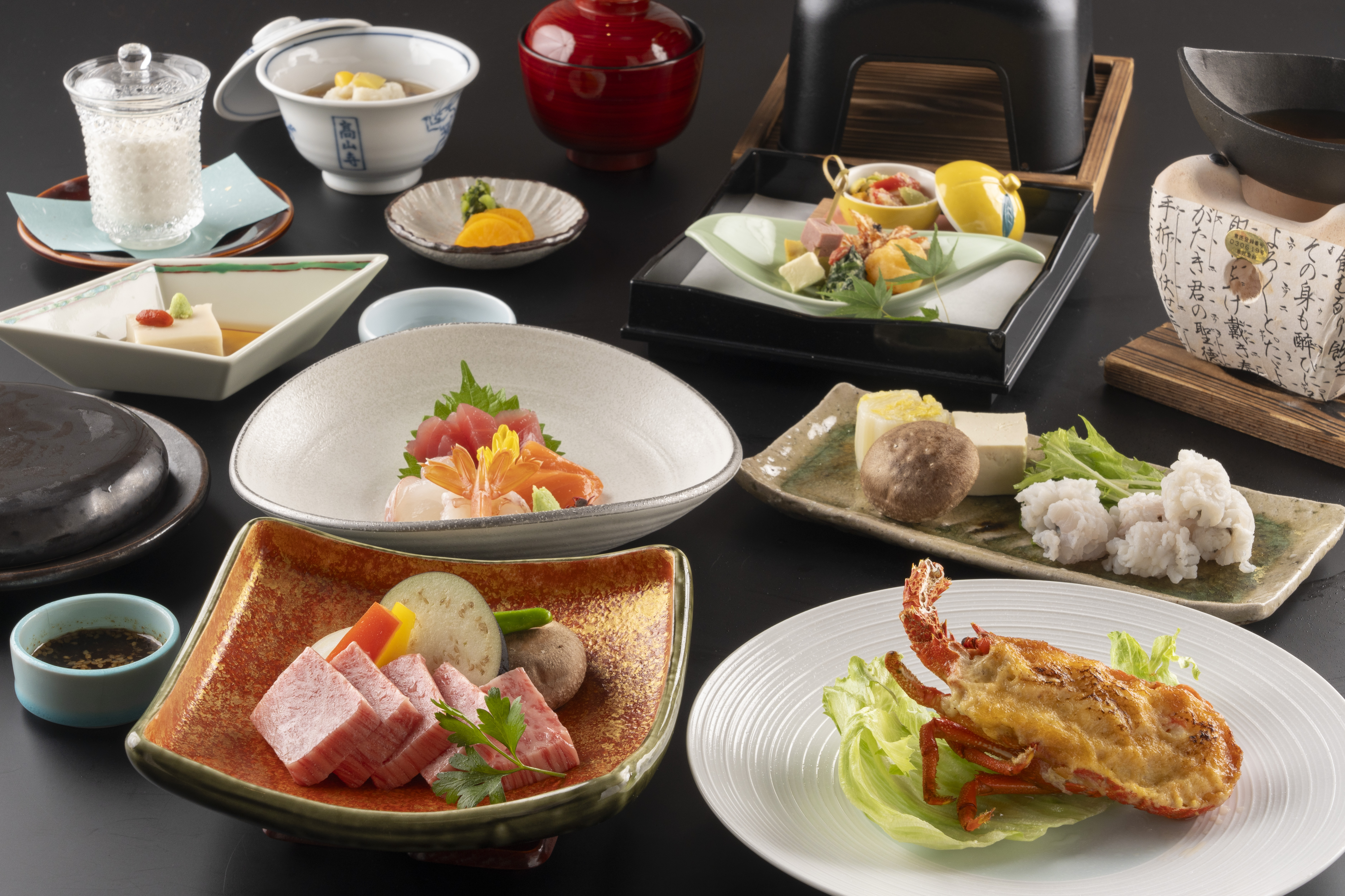 料理は地元名産品と、四季折々の旬の食材をふんだんに使用した創作和食会席に、A4等級以上に拘って使用した飛騨牛料理が絶品。和洋50種類の品目が揃い、郷土料理コーナーも充実した朝食バイキングも人気です。
