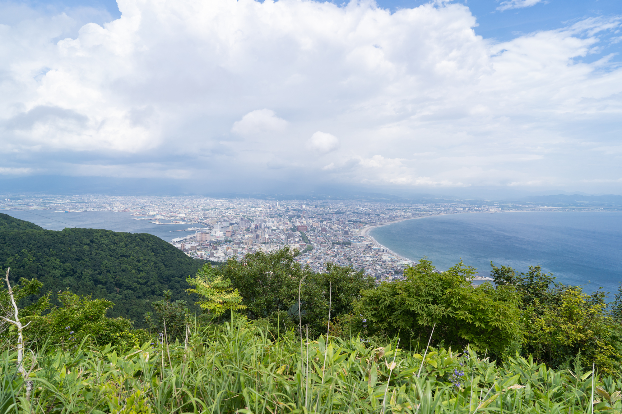 函館山千畳敷は、函館山の南側山頂部に広がる草原状のエリアで、静かに絶景を楽しめる展望スポットです。見晴所からは函館の街並みや函館湾、さらに遠くに駒ヶ岳や下北半島・津軽海峡まで一望でき、山頂展望台とは少し違った角度からの景色を楽しめます。
