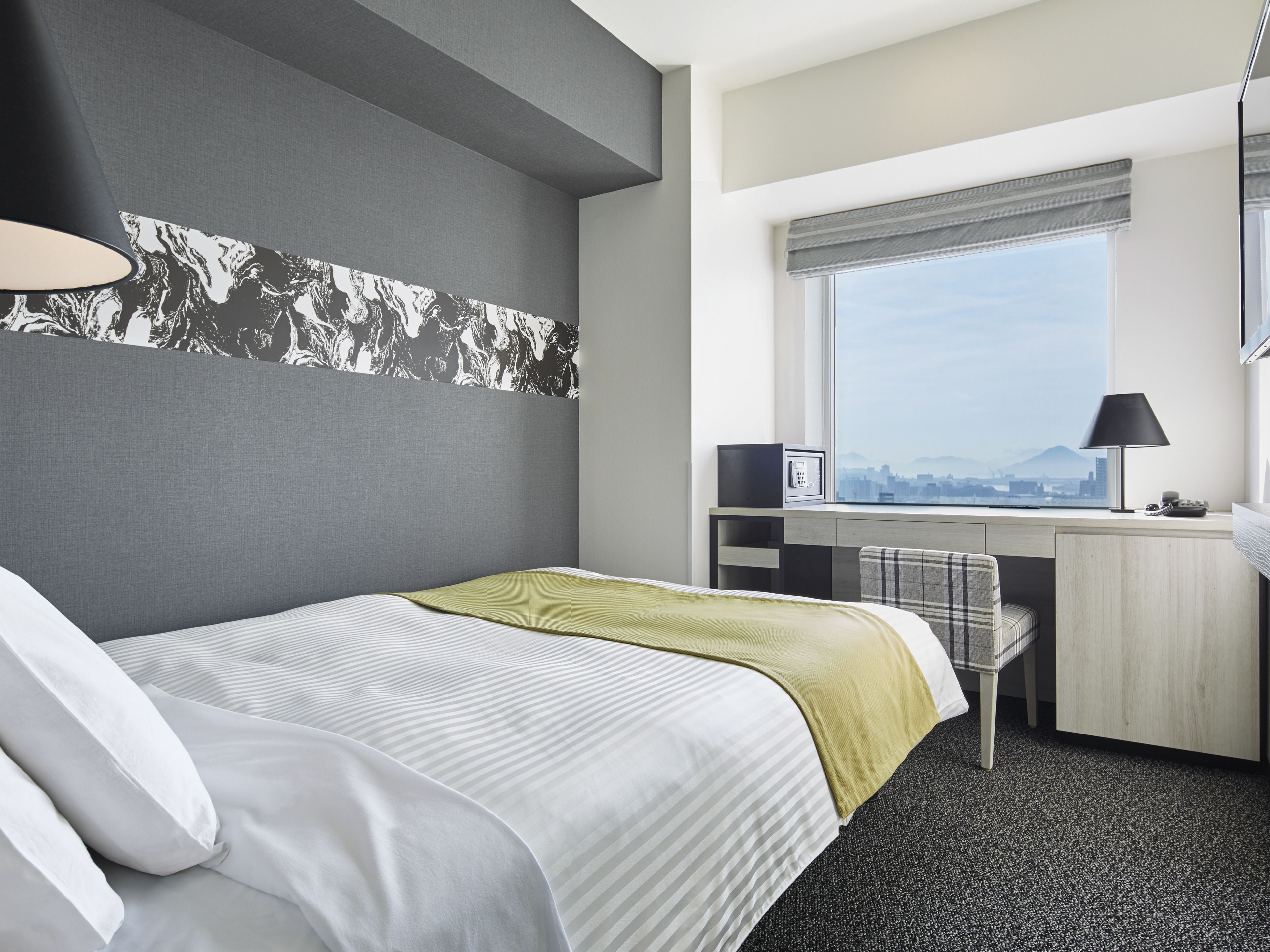 清潔感のある客室は眺めのよさが自慢。眺望はシティビューとハーバービューで、シティビューは尾道駅から観光名所の千光寺山までをのぞめます。