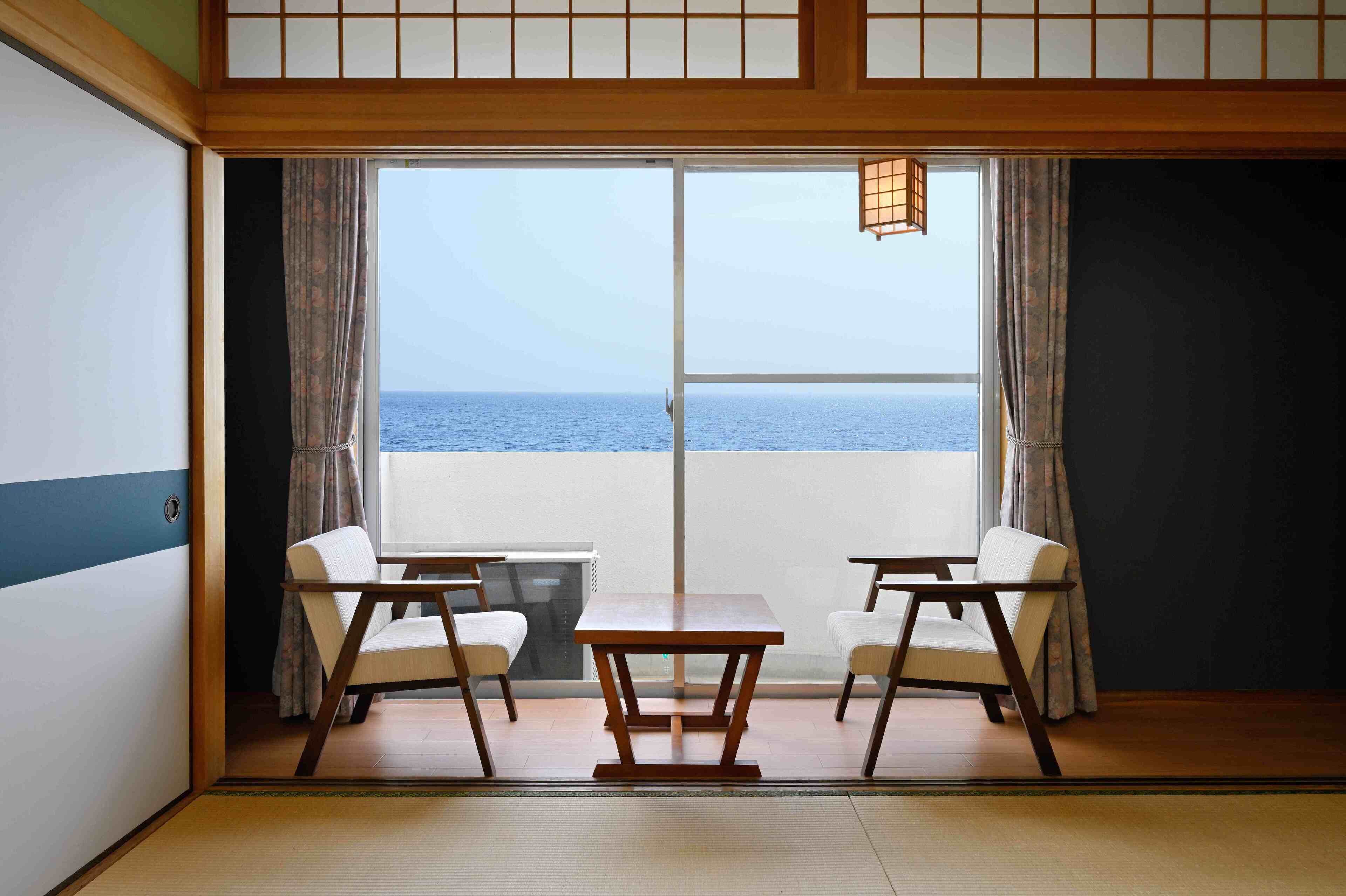 すべての客室は美しい海が目の前。窓を開ければ海と空の壮大なパノラマを楽しめます。客室は洋室と和室の2タイプ。青を基調とした洋室は海をイメージさせるモダンな雰囲気です。和室には最大5名まで宿泊可能。畳敷きの部屋で落ち着いてくつろげます。