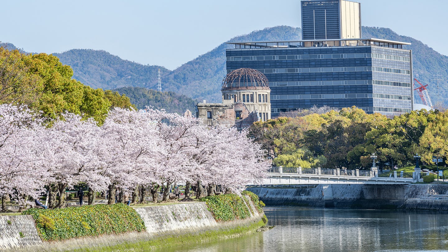 広島平和記念公園は、3月になると春の訪れを感じさせる美しい景色に包まれます。公園内には約300本の桜があり、原爆ドームや平和の灯と桜のコントラストが印象的です。春の穏やかな気候の中、平和への祈りを込めながら公園内を散策するのもおすすめです。