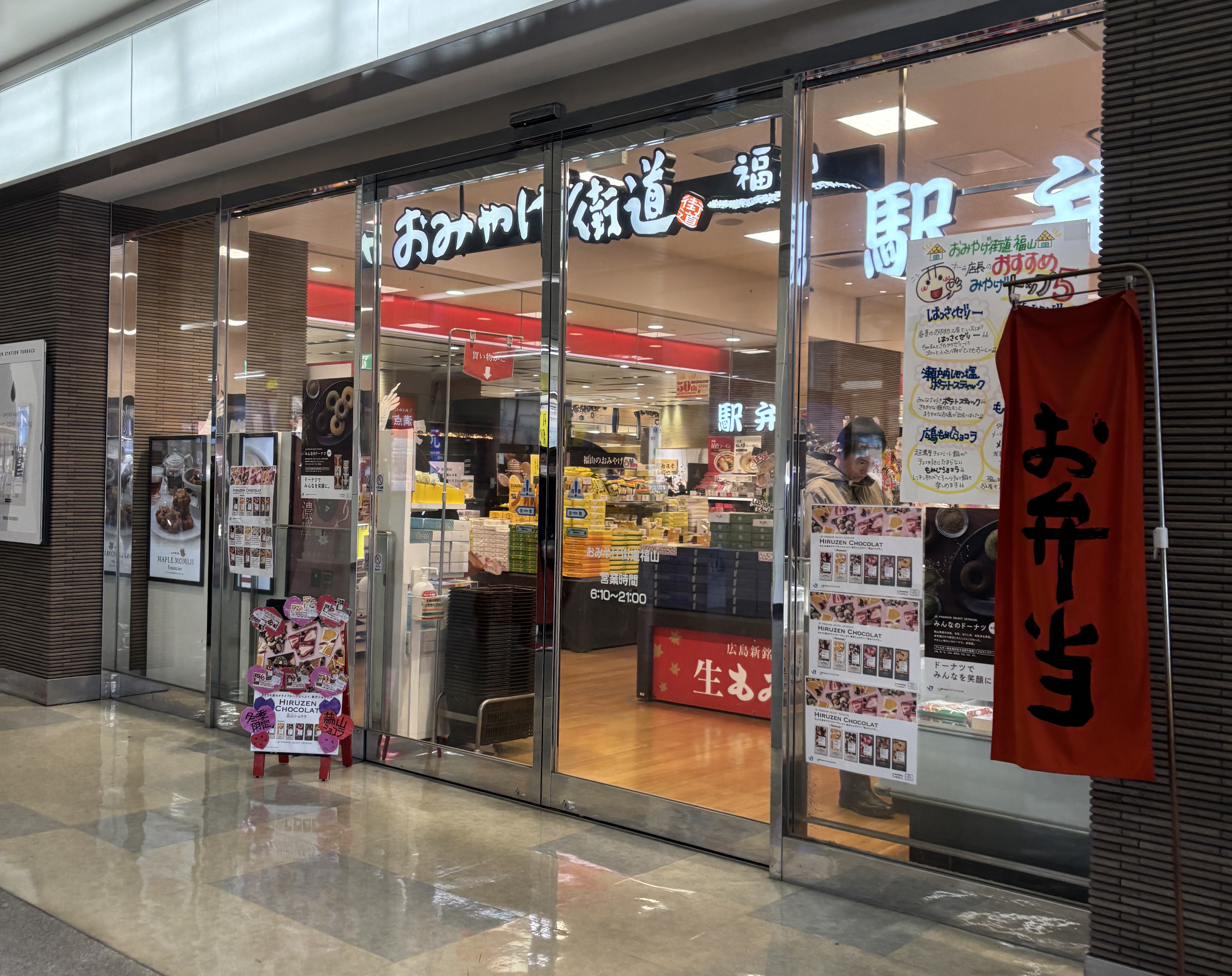 ただ、品ぞろえが少ないため、さんすて福山か近くの和菓子屋さんの直営店などで購入するのがおすすめです。なお、おみやげ街道は改札外のさんすて福山内にもあります。