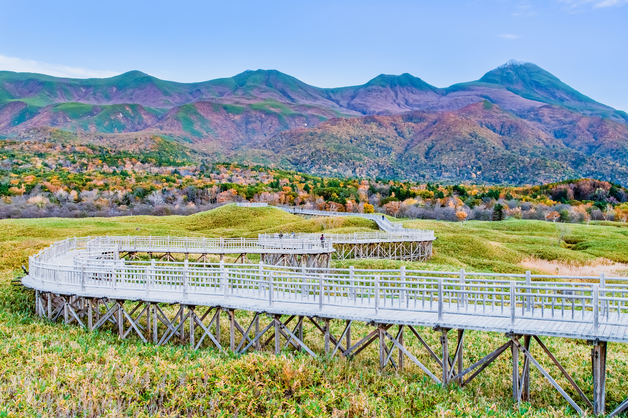 知床五湖には無料で利用できる高架木道(約800m)と、入場料250円で利用できる地上遊歩道があります。10月は「ヒグマ活動期」が終わっているため、フィールドハウスで簡単なレクチャーを受けるだけで自由に散策できます