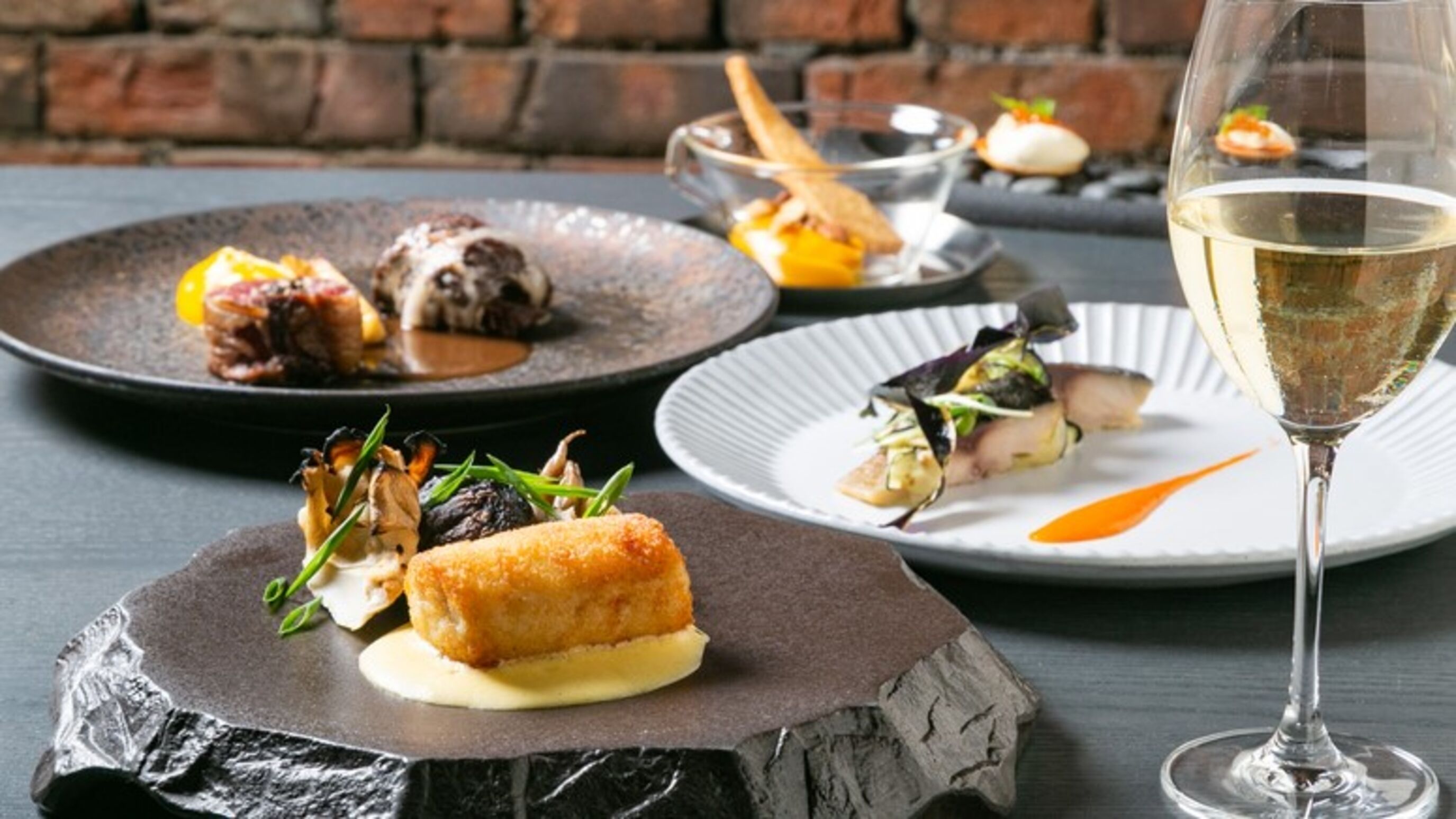 ②地産地消のフレンチ料理とお酒を満喫