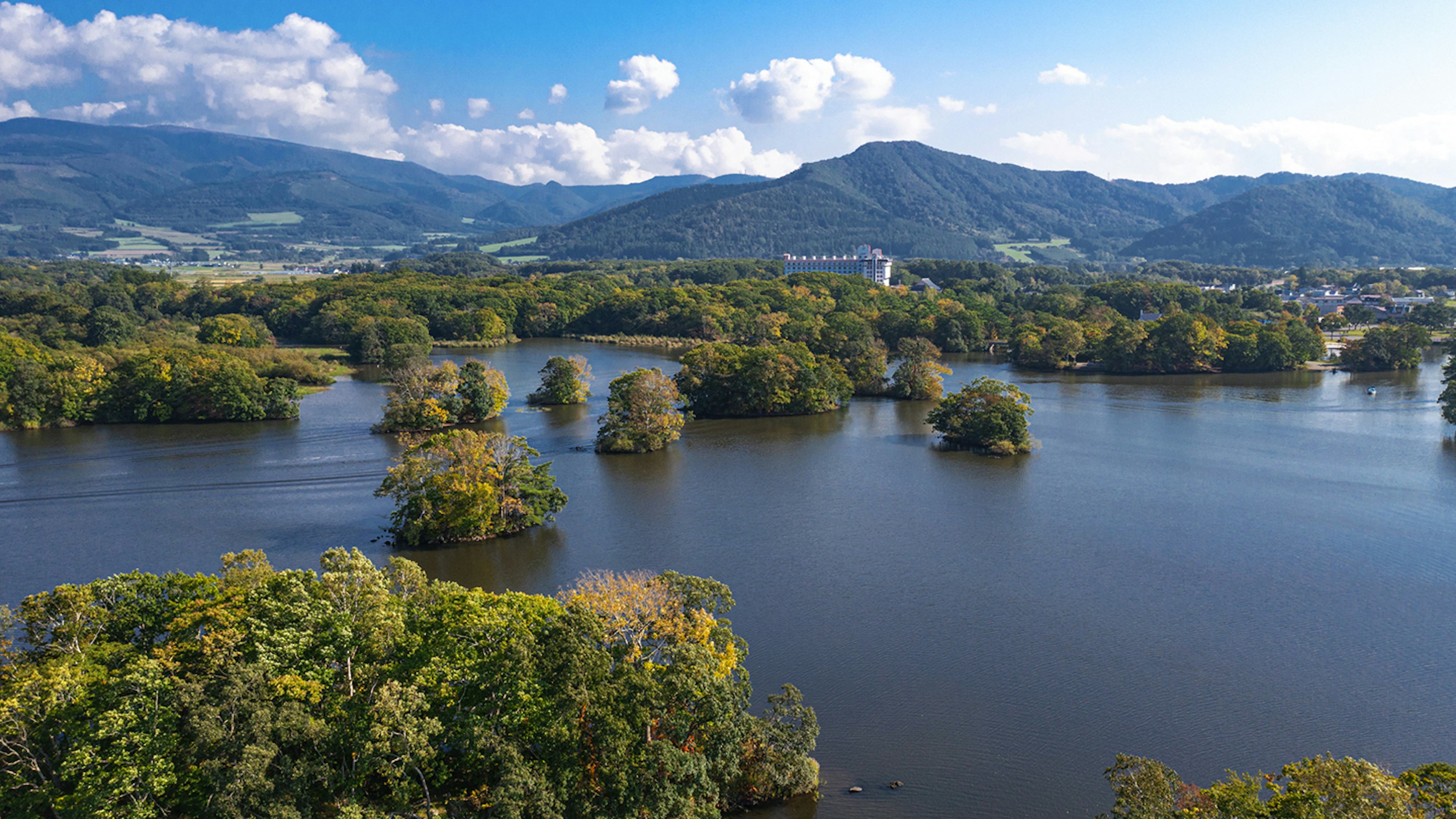 レンタカーを利用すると、大沼国定公園内のさまざまなスポットを自由にめぐれるのが大きな魅力。駒ケ岳を中央に大沼・小沼・蓴菜沼の3つの湖や126の島々からなる国定公園内を自分のペースで観光できます。