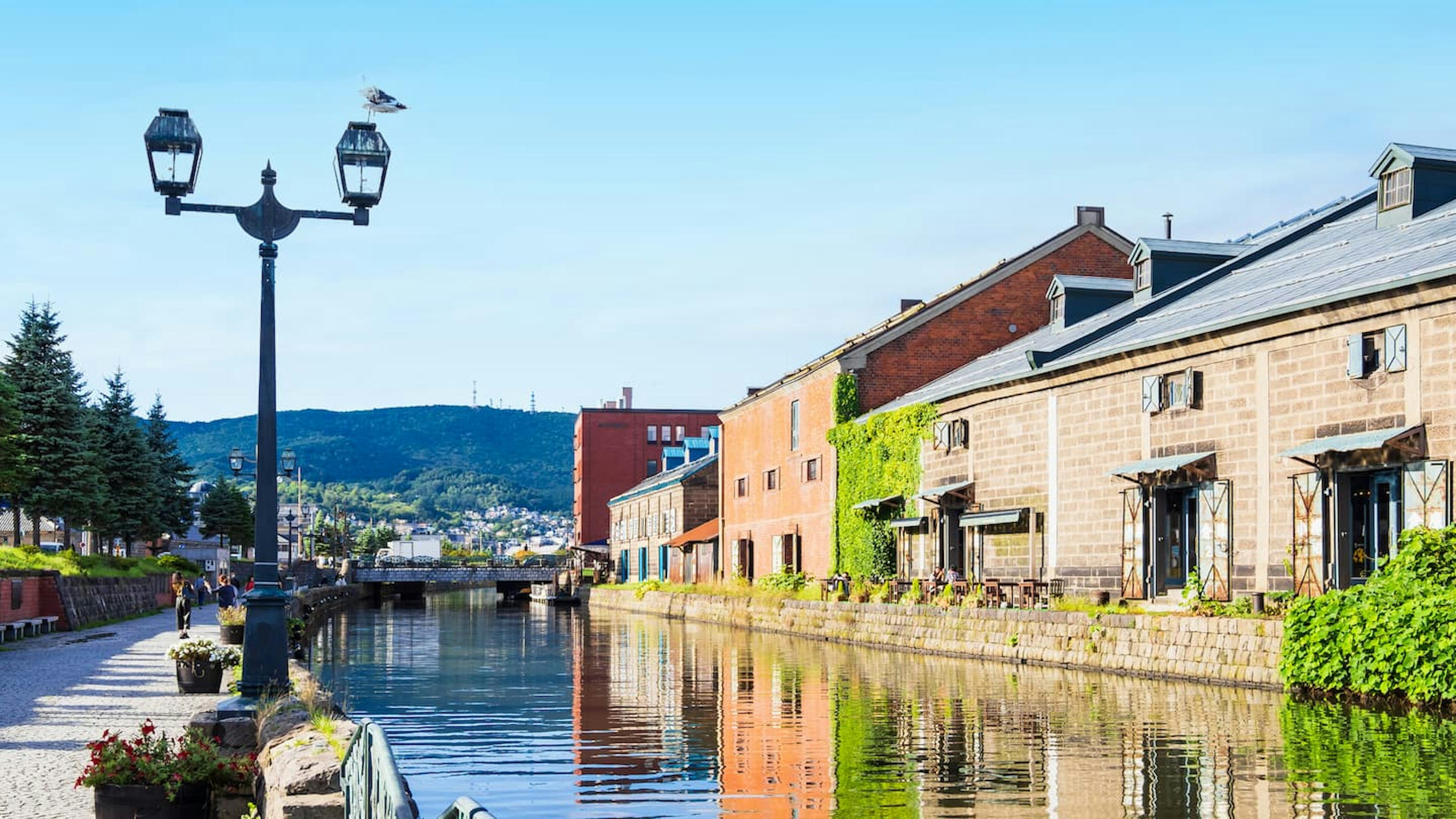 堺町通りを抜けると、小樽市役所が見えてきます。ここを右折して少し歩くと、小樽運河に到着します。運河沿いには明治・大正時代の石造倉庫群が並び、ノスタルジックな風景が広がるのが特徴です。