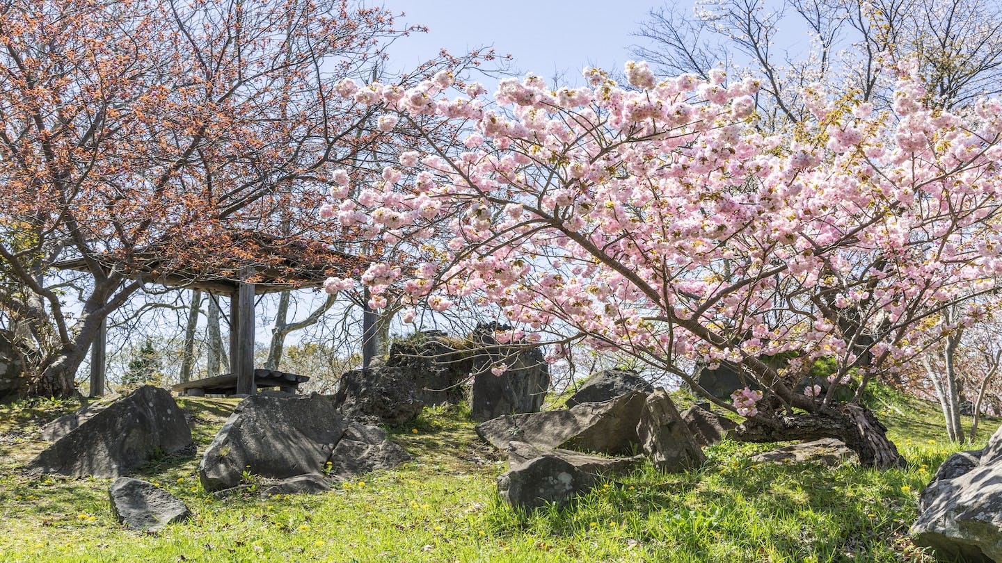 江戸時代には幕府によって蝦夷三官寺のひとつにも指定され、地域の歴史や文化の大切な拠点として守られてきました。境内には千本近い桜が咲き誇り、特に石を割って成長した樹齢200年を超えるエゾヤマザクラ「石割桜」は、北海道の記念保護樹にも選ばれるほどの名木です。