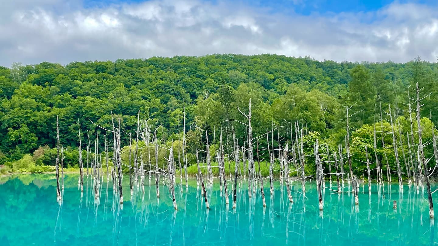 青い池は季節によって表情を変える魅力的なスポットです。夏は鮮やかなコバルトブルーの水面が広がり、秋は紅葉と青のコントラストがうつくしく、冬はライトアップされた幻想的な風景を楽しめます。訪れる時期に合わせて、適切な交通手段をえらぶことが大切ですね。