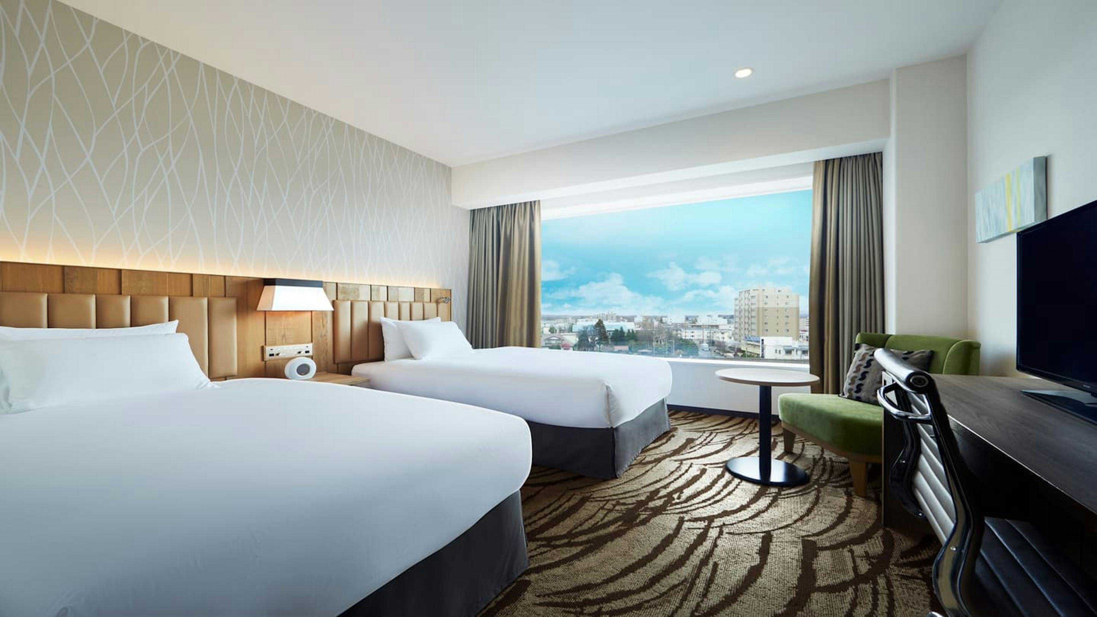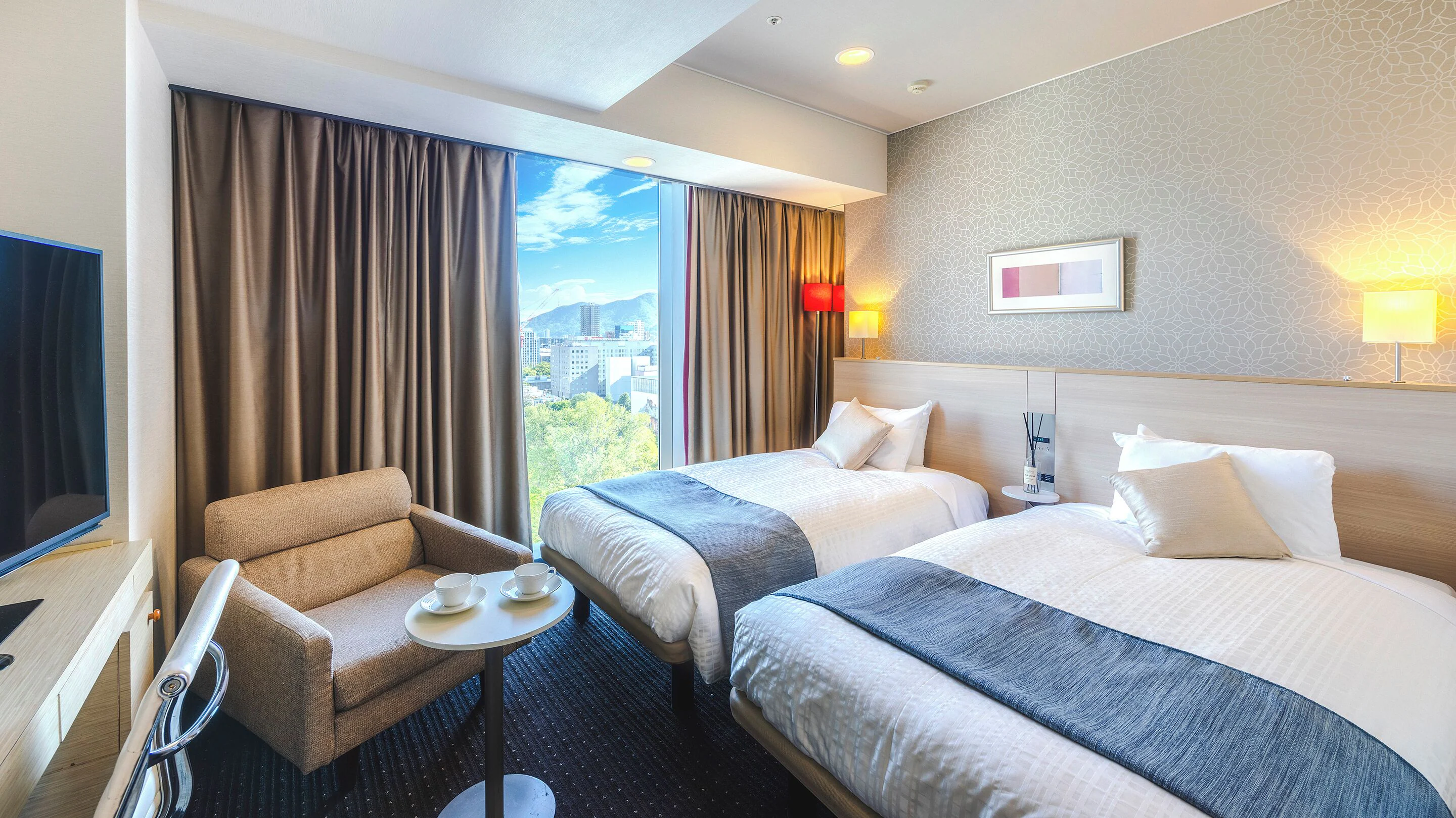 観光で利用しやすいモデレートフロアには、白を基調としたシンプルなインテリアのモデレートシングル、モデレートダブル、モデレートツイン、角部屋で大きな窓から札幌のシティビューを眺められるコーナーツインが用意されています。