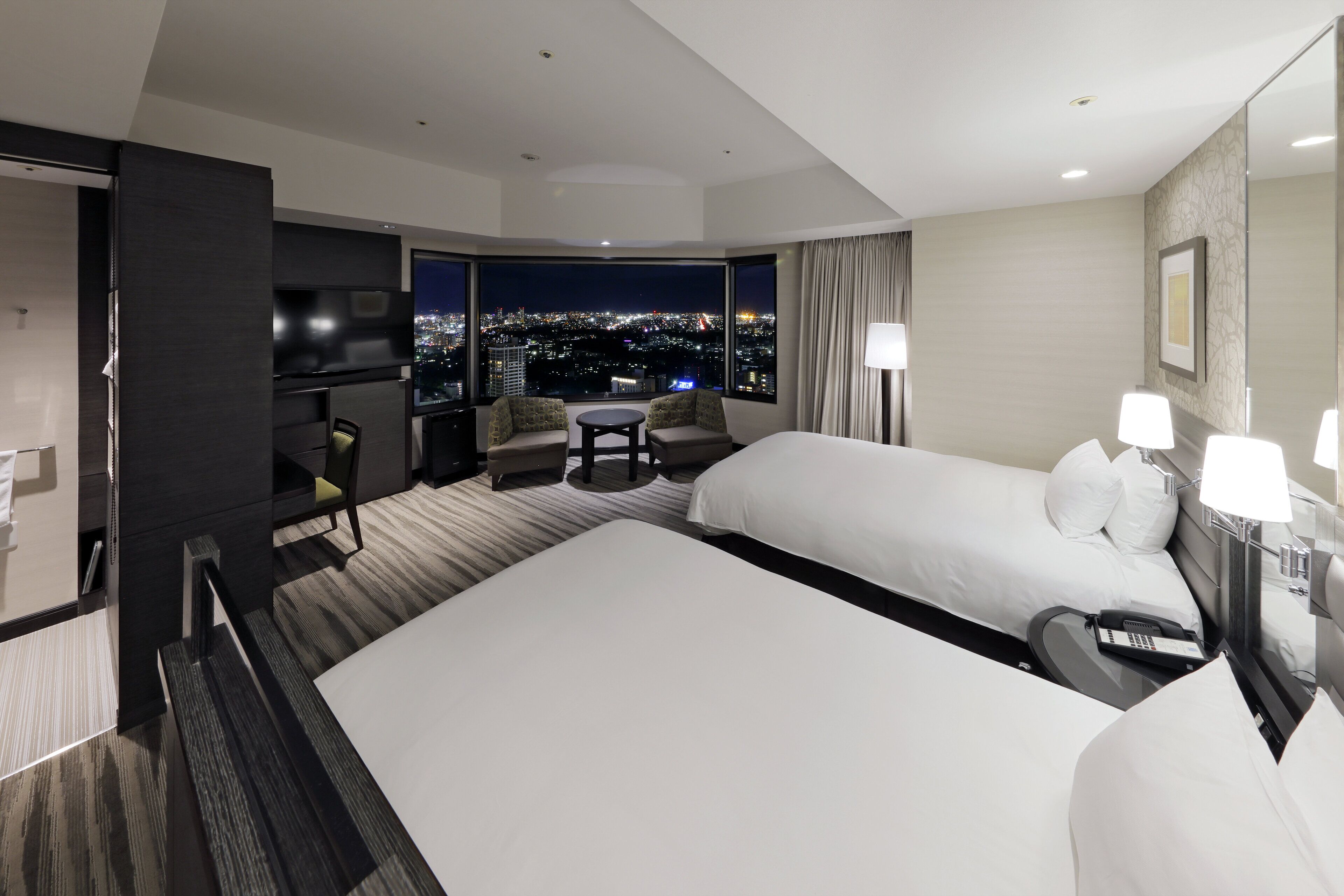 本館の部屋は、全室地上60m以上の高層階にあるので、どの部屋からも札幌の美しいシティビューを眺めることができますよ。