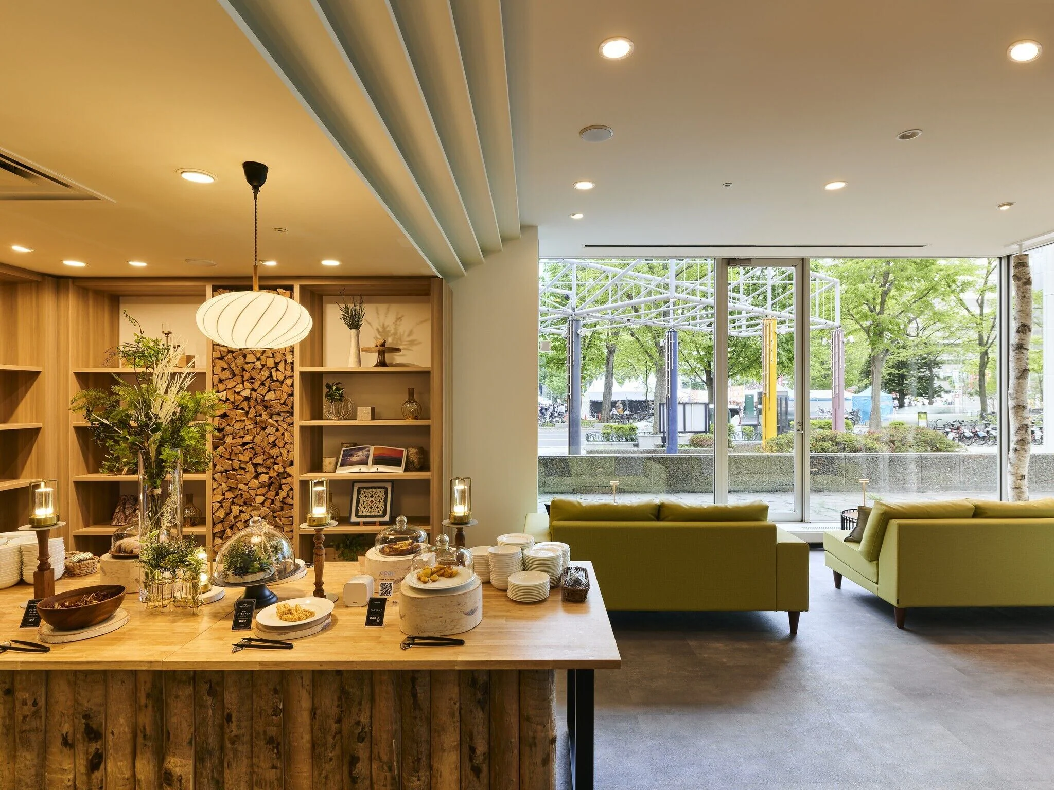 このホテルでぜひ利用したいのが宿泊者専用ラウンジ「プレミアムラウンジ KOMOREBI」。大きな窓から大通公園を望む広々とした空間で、北海道のお菓子やホテルメイドのスイーツを自由にいただくことができます。ここでお気に入りのお菓子を探してみて、空港などで北海道土産として購入するのもおすすめですよ。