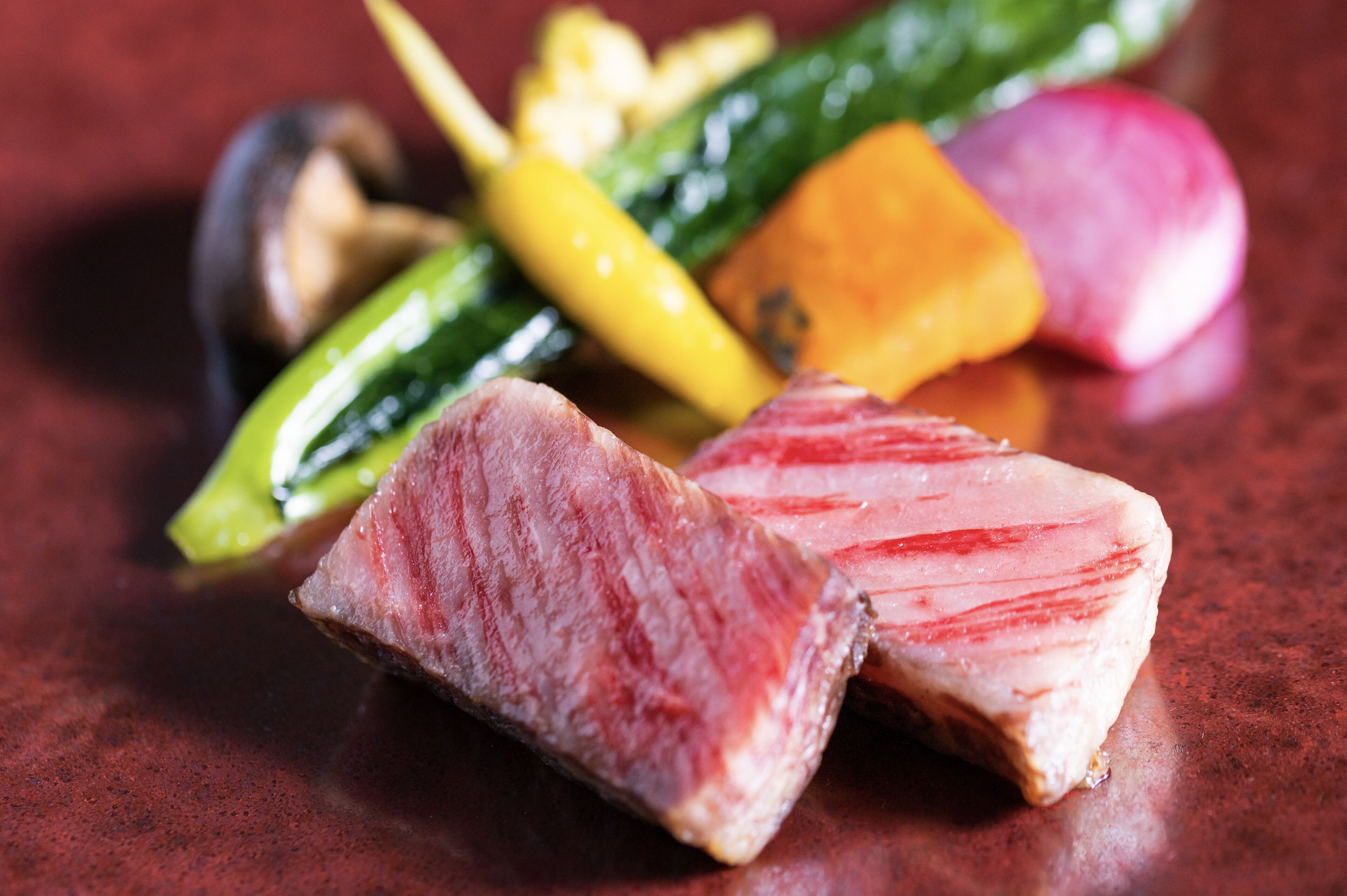 有馬山叢 御所別墅の料理は、兵庫の山と海の旬素材を惜しみなく使った創作和食です。地元で育った神戸ビーフ・但馬玄をはじめ、明石浦漁港直送の鮮魚や兵庫の有機野菜が提供され、季節ごとに違う感動を与えてくれます。