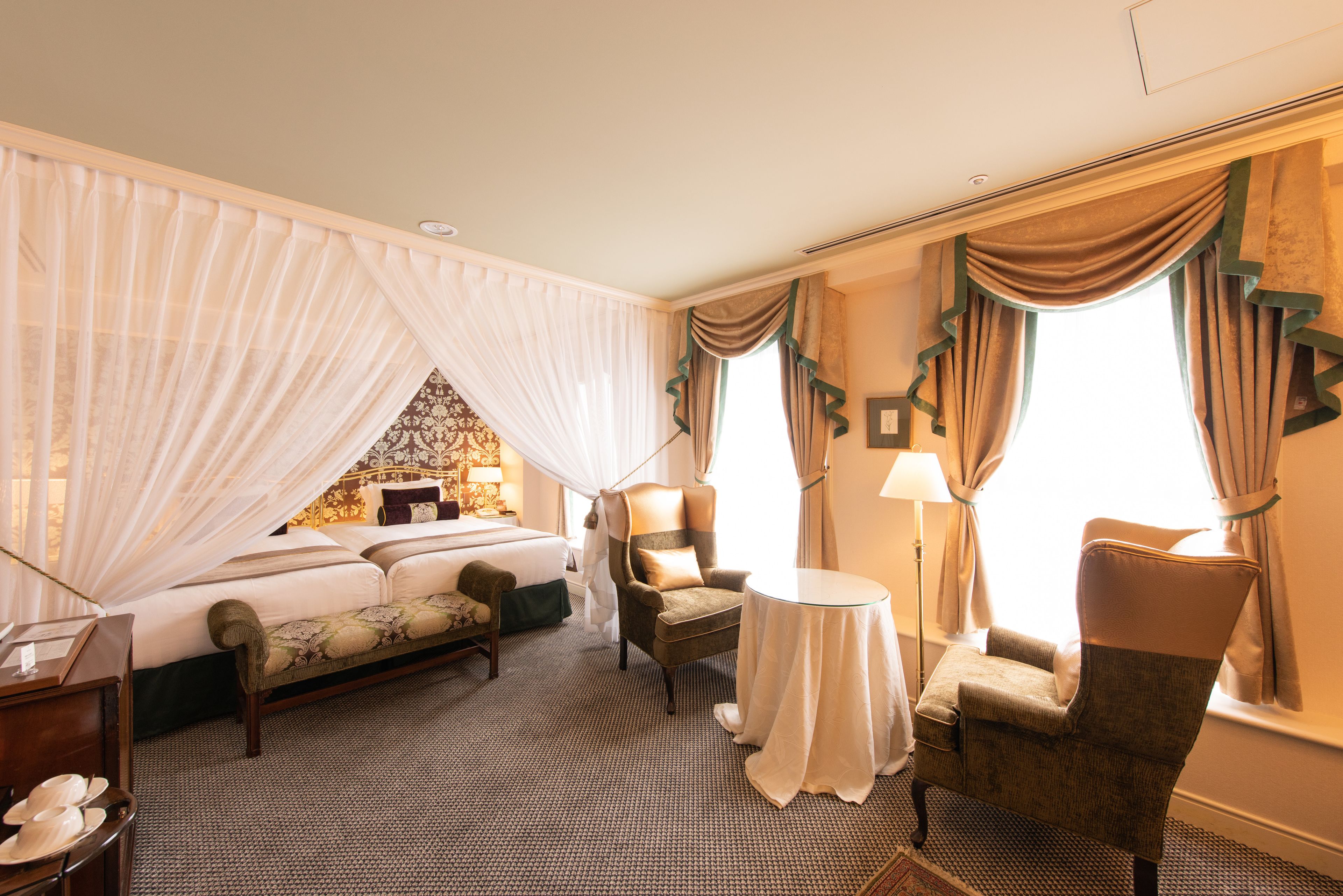 特にプレジデンシャルツインルームは、中世ヨーロッパを感じさせる優雅な雰囲気。広々とした空間にエレガントなソファや深めのバスタブをそなえており、心地よい時間を過ごせます。