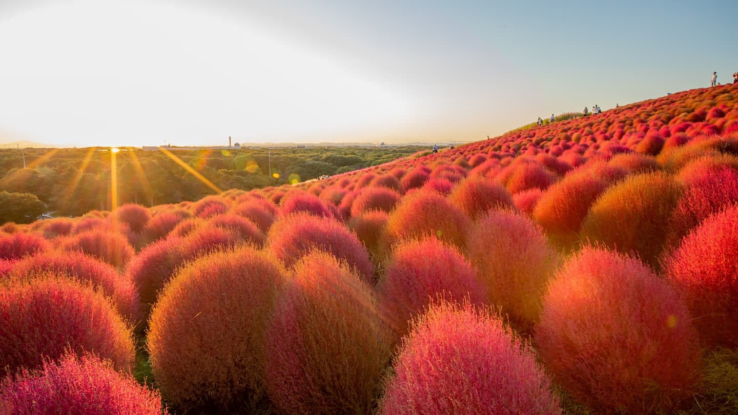 国営ひたち海浜公園は、茨城県ひたちなか市にある広大な公園です。約300haの敷地内には、季節ごとに異なる花々が咲き誇り、訪れる人々を魅了します。特に有名なのは、春のネモフィラと秋のコキアで、そのうつくしさに多くの観光客が訪れるスポットです。