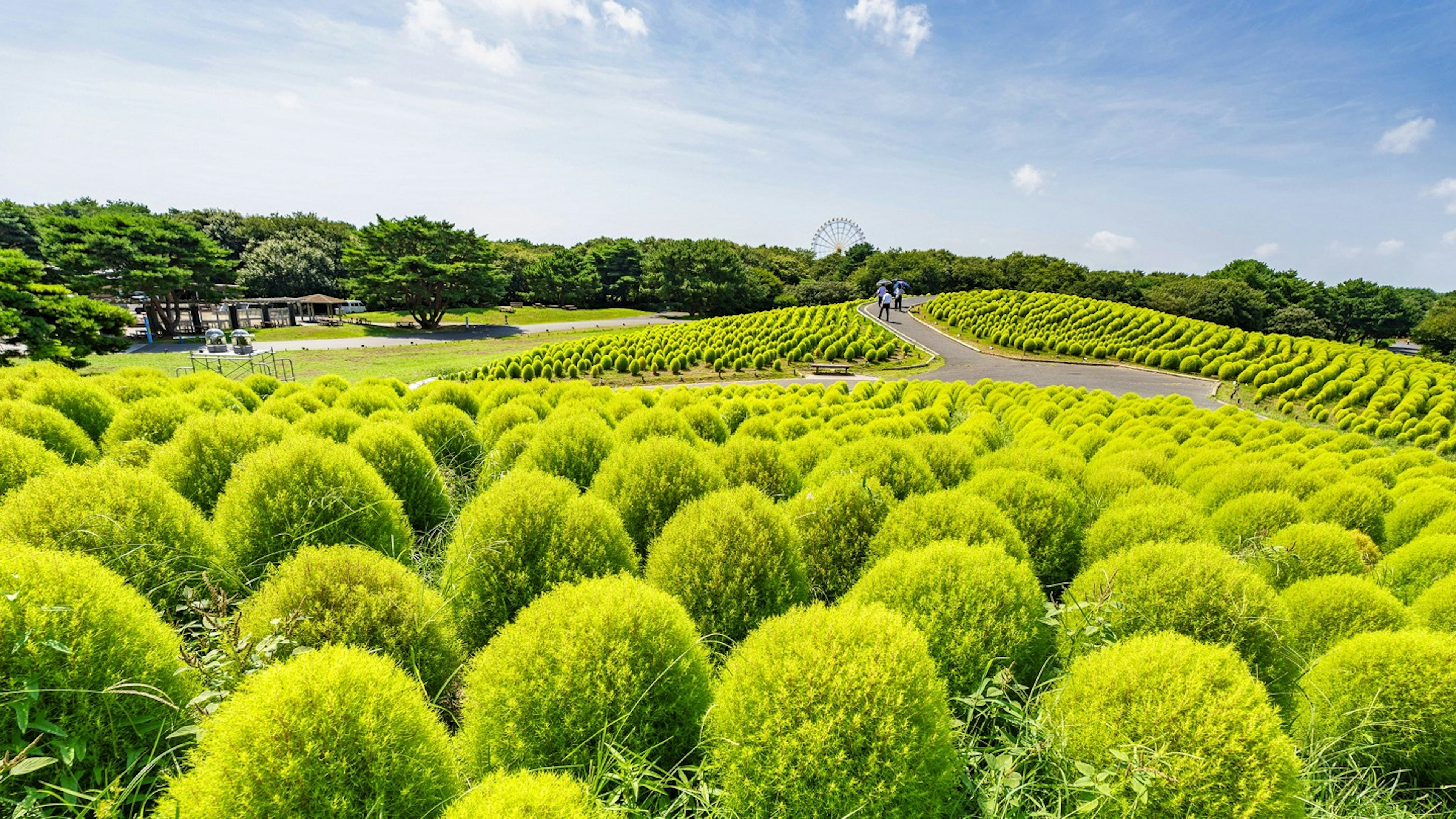 特に、3月下旬から4月上旬にかけては、約100万本のスイセンが一面に咲き誇り、黄色い絨毯のような景色が広がります。広大な公園内を散策しながら、海を背景に咲く花々のうつくしさを堪能してください。また、サイクリングやバーベキューなども楽しめるので、家族や友人と一日中楽しく過ごせる場所です。